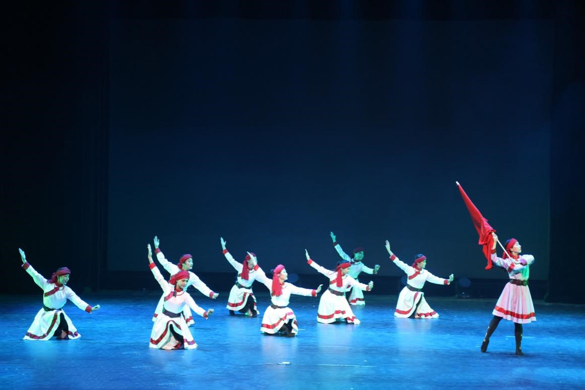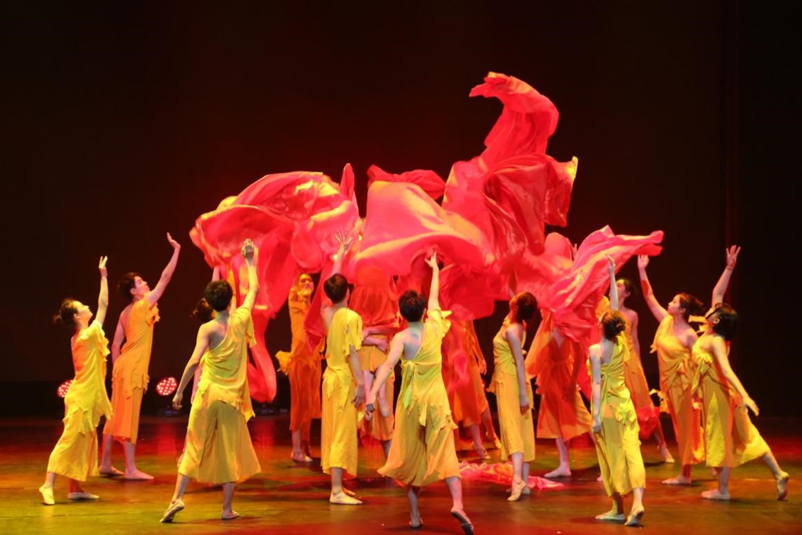 我校原创群舞《红旗颂》气势恢宏,当音乐响起、红旗飞舞的时候,在场观众都感受到了浓重的爱国情怀。