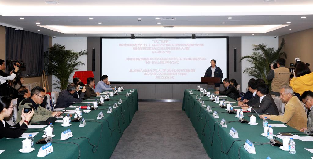 北航新闻网4月8日电(记者 邸白鹭 宋超)4月8日上午,中国新闻摄影学会和北京航空航天大学在北航如心会议中心联合举办“沈飞杯”庆祝新中国成立70周年航空航天辉煌成就大展暨第五届航空航天摄影大赛启动仪式、中国新闻摄影学会航空航天专业委员会秘书处挂牌仪式、北京航空航天大学文化传媒集团航空航天影像研究院成立仪式。