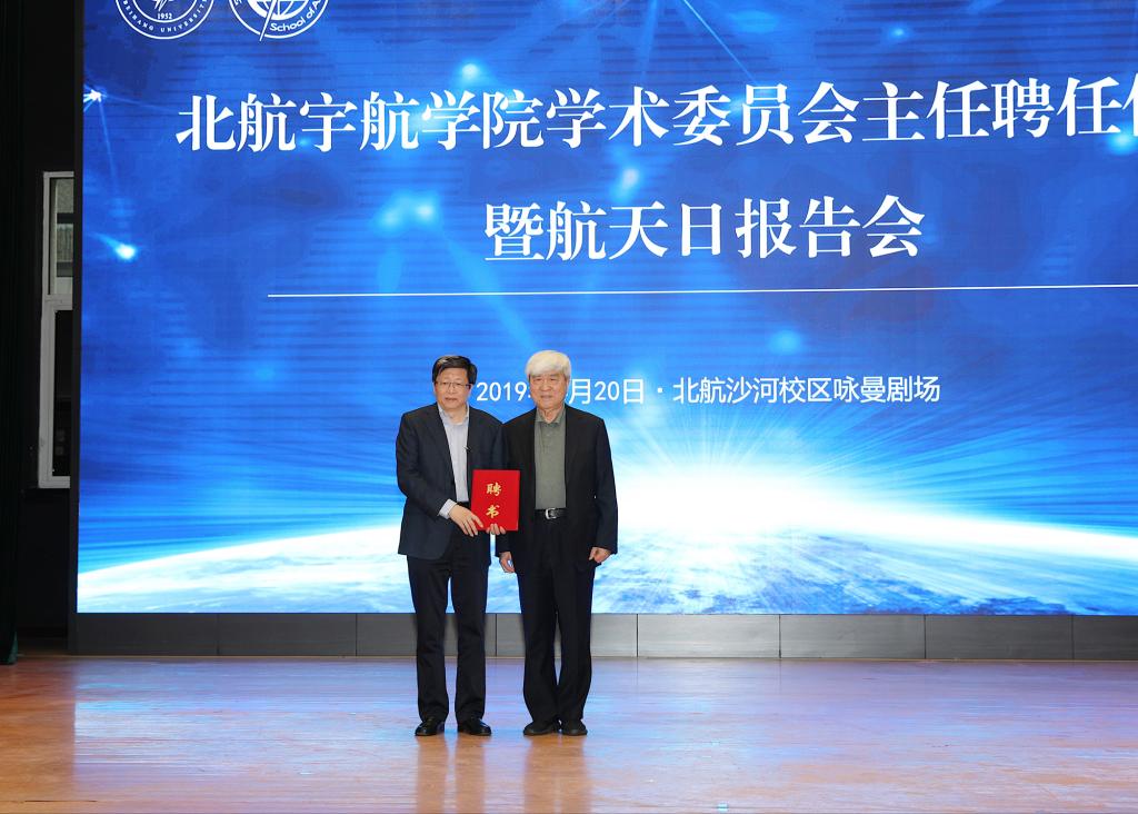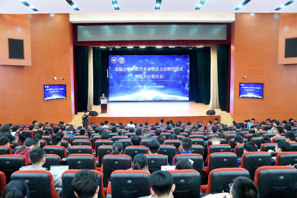 北航新闻网4月20日电(通讯员 苗建军/文 记者 邸白鹭/摄影)4月20日下午,宇航学院聘任中国航天科技集团公司科技委主任包为民院士为学术委员会主任的聘任仪式在北航沙河校区咏曼剧场举行。聘任仪式后,包为民院士做客“北航大讲堂”,进行航天日科普报告。校党委书记曹淑敏,校长助理赵罡,宇航学院名誉院长戚发轫院士,校学生工作部、宇航学院负责人出席大会,宇航学院师生、沙河校区学生以及来自北京四中、北京八中、北师大二附中的师生代表共计400余人到场,大会由宇航学院院长杨立军教授主持。