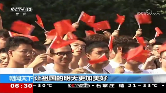 CCTV《朝闻天下》“我和国旗同框”活动校园行2019年9月4日报道我校: