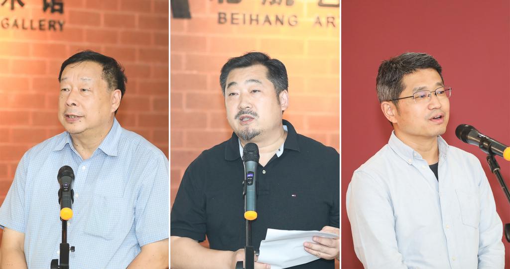 北京画院艺委会副主任王志纯、北航首届驻校艺术家石晋、北京林业大学美术研究所所长李汉平、北京师范大学艺术与传媒学院美术系主任古棕、北京工业大学艺术设计学院院长邹峰、清华大学绘画系副主任周爱民等嘉宾和参展艺术家代表在开幕式上致辞,对展览的成功举办表示祝贺,充分肯定了北航艺术馆成立十四年来坚持“公益性、专业化、高品位”定位、持续举办高品位展览、引领大学艺术传播和美育实践的探索与努力,并就当代学院艺术发展的场域与视界主题、艺术创新的理念与路径等,分享了自己的感悟与体会。