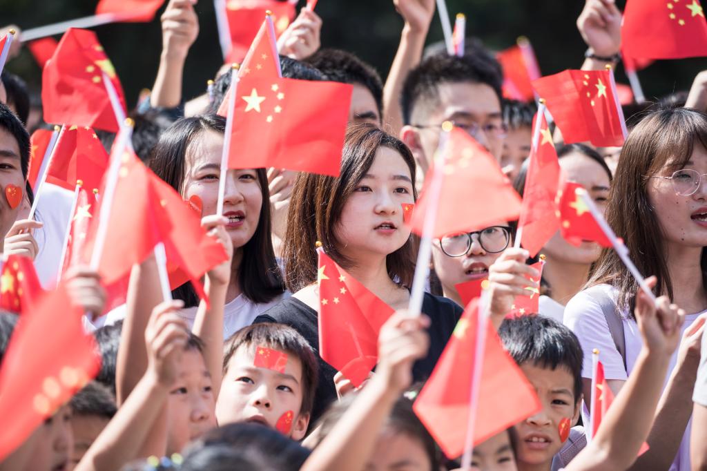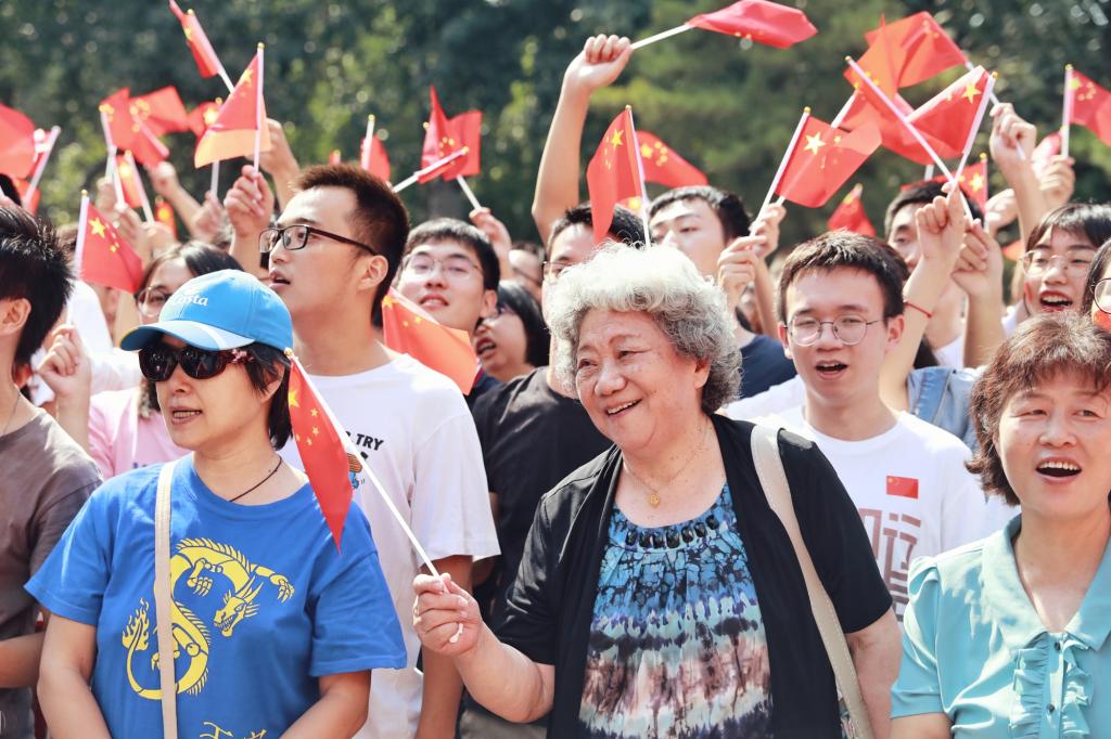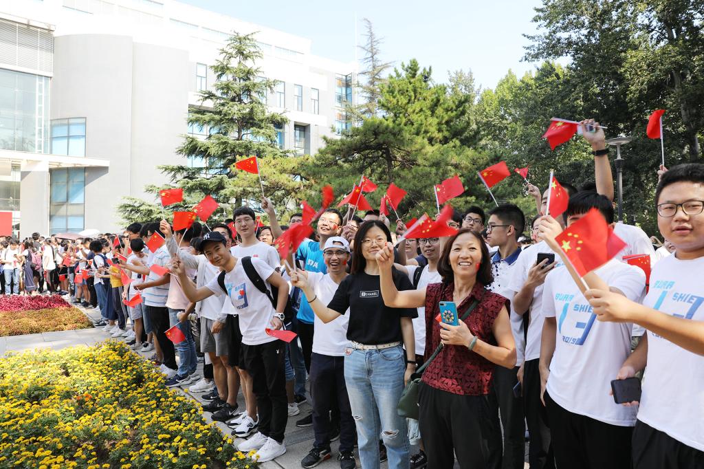 生物医学与工程学院大四学生张展毓表示,身在情绪激昂的人群中,也不自觉的融入到这种喜庆热烈的气氛中,心中充满着对祖国的热爱。在中华人民共和国成立七十周年之际,把自己的人生理想融入民族复兴的伟大梦想,祝福祖国繁荣昌盛、更加辉煌!