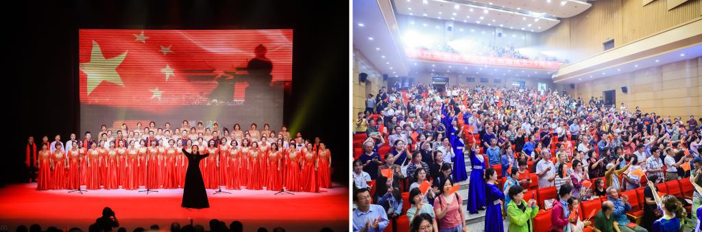 晚会最后,场上场下千余人共同高唱《我和我的祖国》,大家挥舞着手中的国旗,共同祝福祖国更加繁荣昌盛!