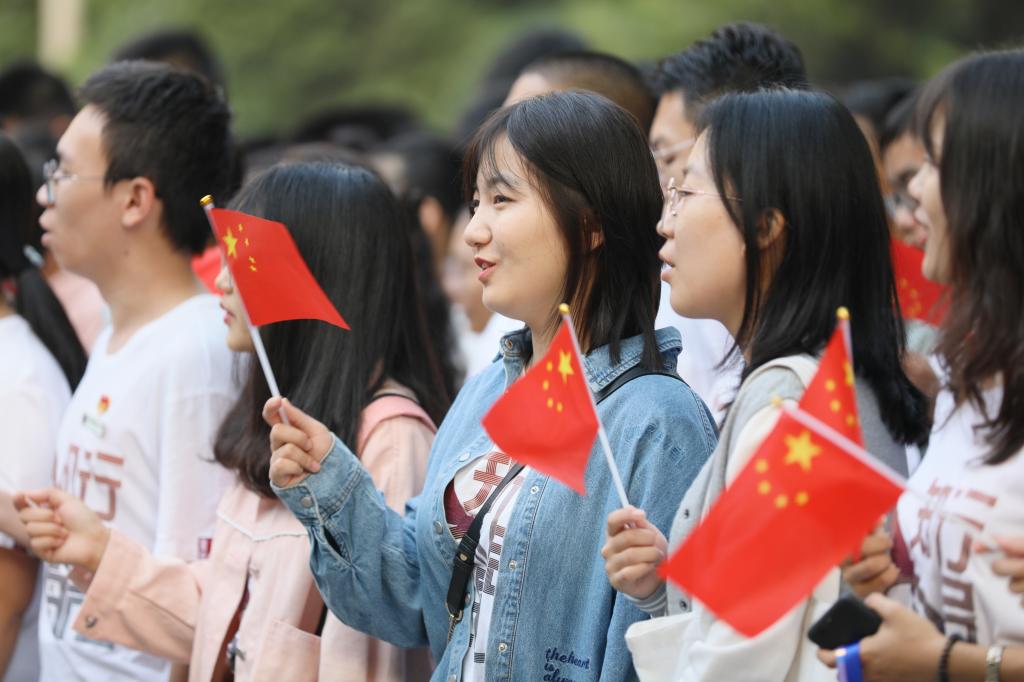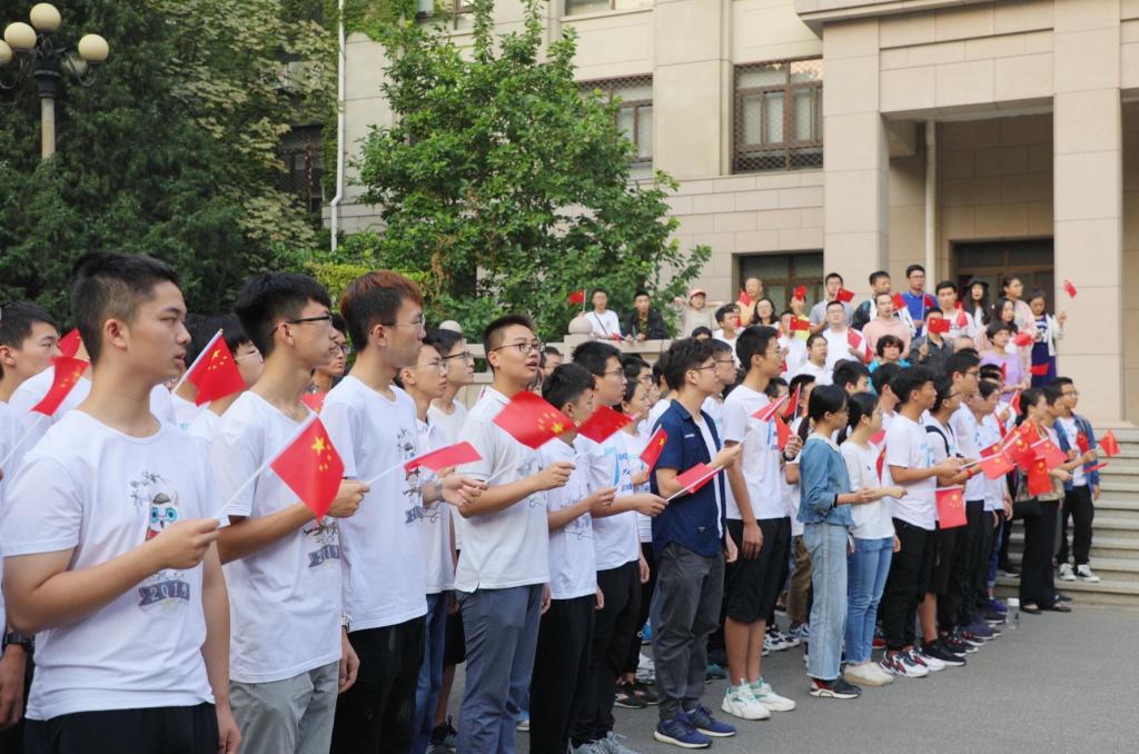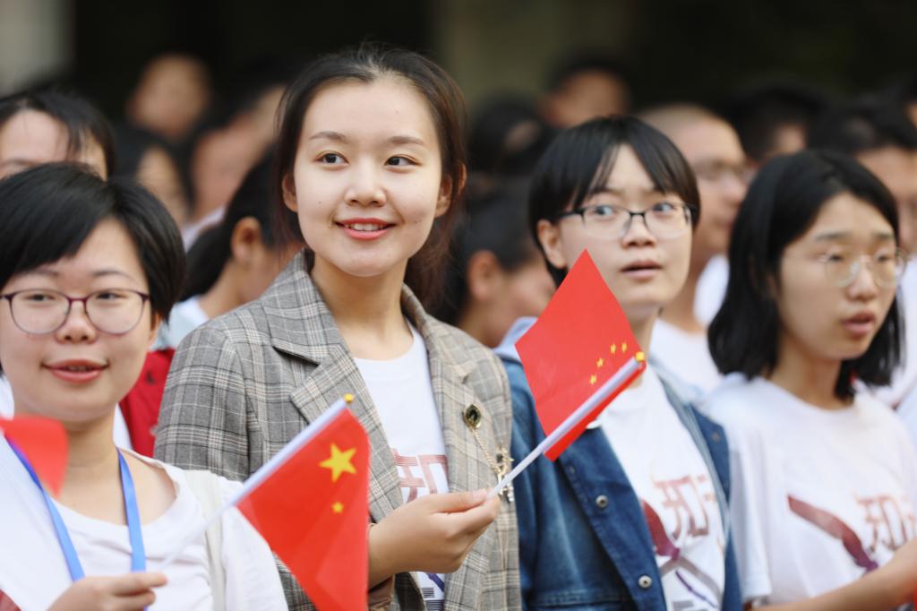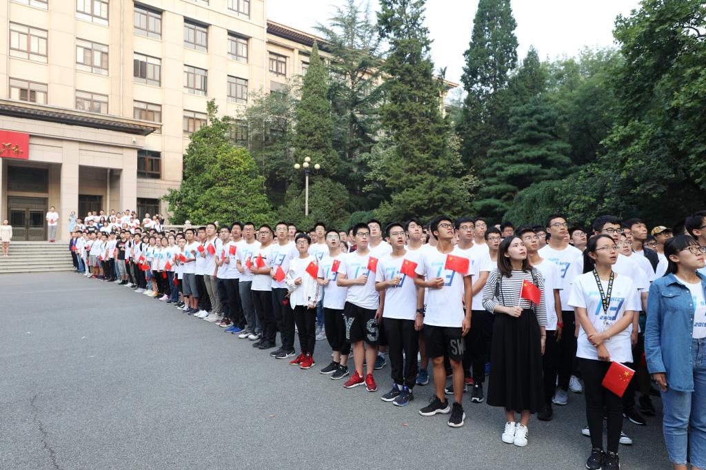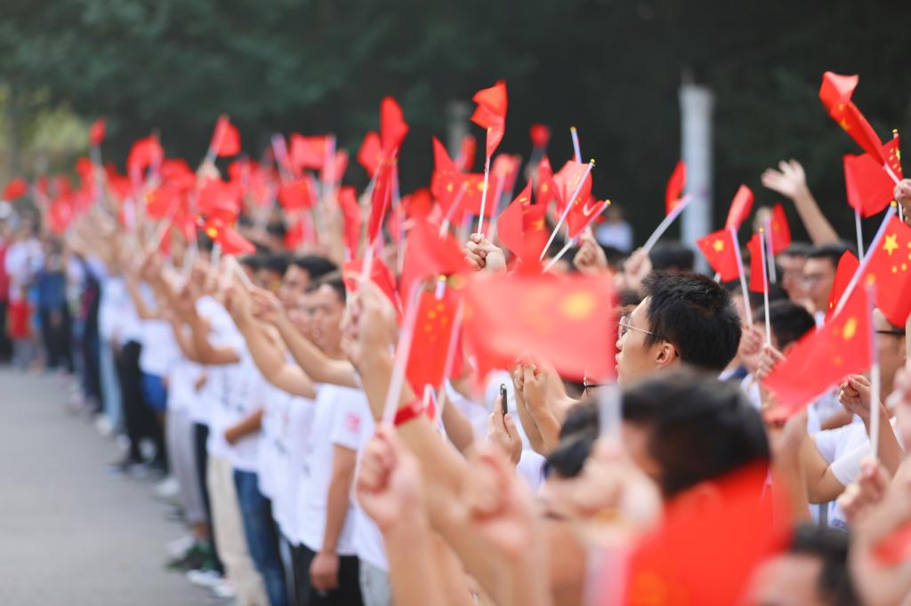 伴随着雄壮的《义勇军进行曲》,鲜艳的五星红旗在现场所有人庄严的注视下徐徐升起、迎风飘扬,嘹亮的国歌响彻校园。