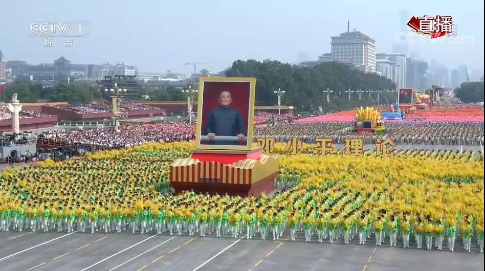 接下来,由10万名群众、70组彩车组成的36个方阵依次通过天安门广场中心区,在长安街上展现共和国流动的历史进程。群众游行以“同心共筑中国梦”为主题,分为“建国创业”“改革开放”“伟大复兴”三大篇章。游行队伍展示着毛泽东、邓小平、江泽民、胡锦涛和习近平同志巨幅画像。1949名青年高擎最大的五星红旗走在游行队伍的最前面,随后是2019名青年组成的国旗年号和国徽方阵。11时50分左右,在“春天的故事”的旋律中,由我校3561名学子组成的 “关键抉择”方阵气势磅礴、精神抖擞地通过天安门,把口号喊得震天响,带着荣耀和梦想,接受党和人民的检阅?;ǔ德÷∈还?,他们手举花束,方阵化身为春风吹过的花海,他们高举邓小平画像和“坚持邓小平理论”的标语,致敬改革开放这一决定中国命运的关键抉择。