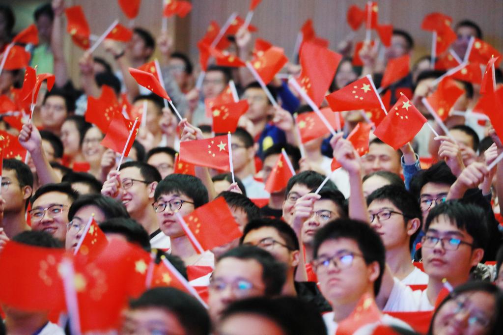 直播会场再次沸腾,北航师生们挥舞着手中的五星红旗,欢呼雀跃,每个人脸上都洋溢着喜悦和自豪的神情。