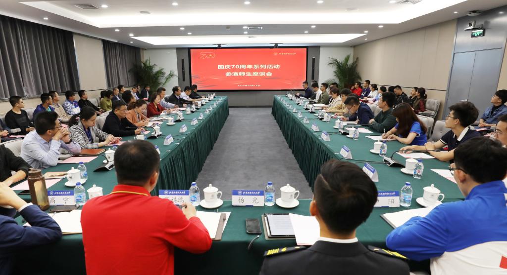 北航新闻网10月11日电(通讯员 金鑫/文 记者 邸白鹭/摄影) 10月10日下午,我校在如心会议中心召开国庆70周年系列活动参演师生代表座谈会。校党委书记曹淑敏、党委副书记赵罡,国庆工作领导小组成员单位负责人、参演师生代表、现场观礼代表、新生代表、青年教师代表近70人参加座谈。