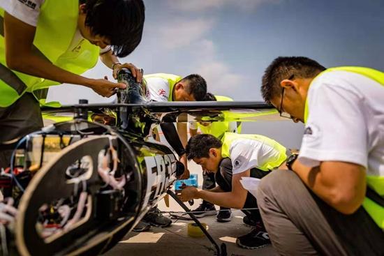 科技创新训练营成员在进行“冯如三号” 1号机的飞行前检查。北京航空航天大学供图