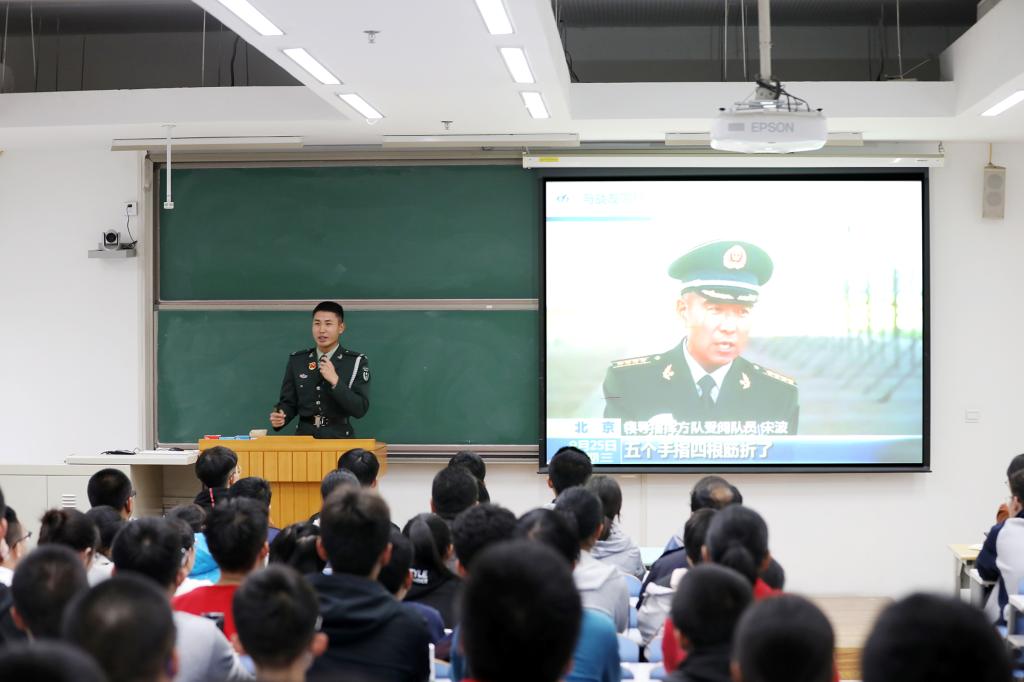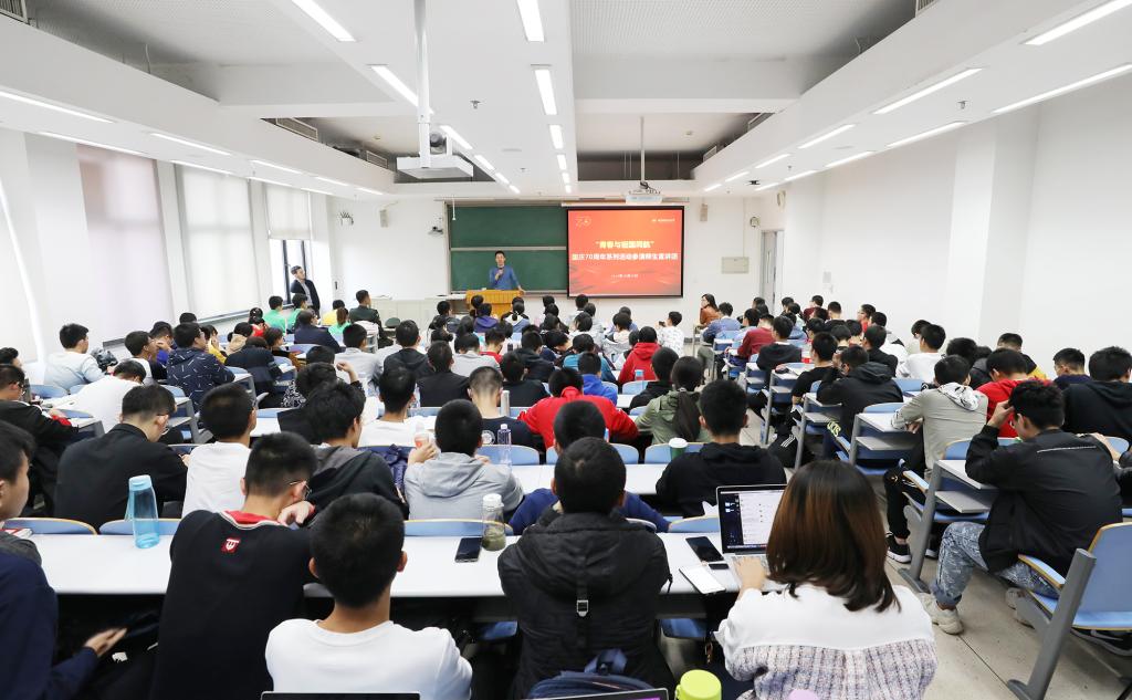 课前,全体同学观看了主题片《青春与祖国同航》,回顾北航学子参与庆祝新中国成立70周年阅兵式、群众游行和群众联欢活动的精彩瞬间。主持人、飞行学院专职辅导员赵圆介绍了国庆70周年活动参演师生宣讲团成立的背景和意义,并分享了自己两次参与国庆阅兵的难忘经历。