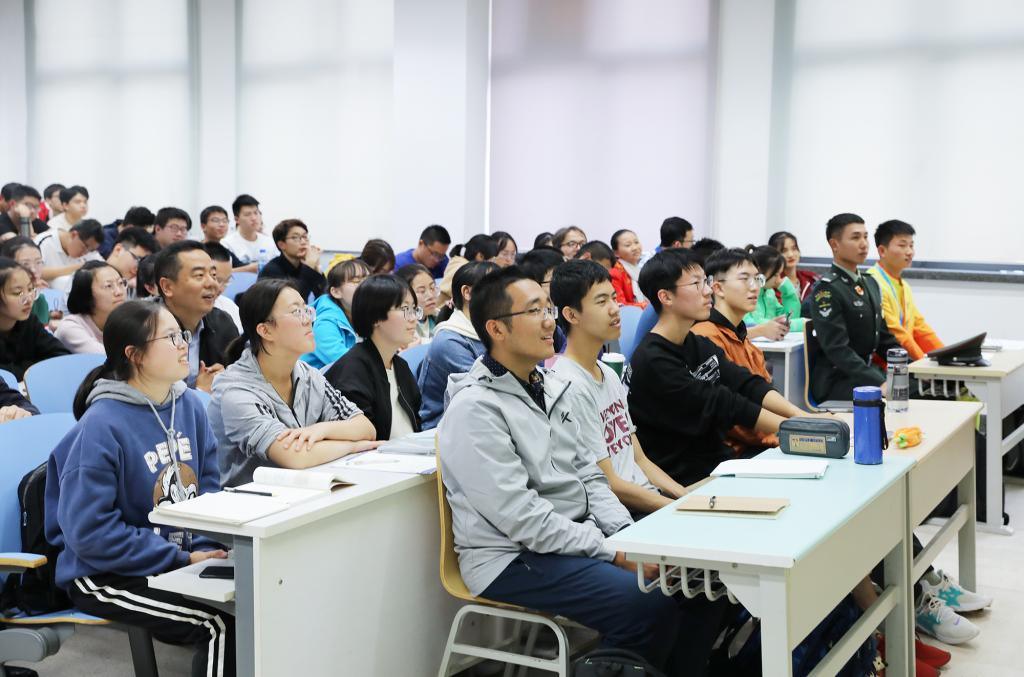 课上,掌声经久不断,新生们被学长学姐的故事深深感染,课后纷纷主动上前交流?!霸谡饨诳紊?,我感受到了身为北航学子的团结热情和爱国精神,这种牺牲小我、成就大我的无私奉献真的让我很感动。”守锷书院2019级学生林维滨这样说。“大家经受了国庆的洗礼,内心无比激动,想通过宣讲团这种方式把对祖国的热爱、对团体的忠诚表达出来,希望把积极向上的精神力量传递给更多的同学们?!甭粽庋樯茏约罕渭有餐诺某跣摹?/p>