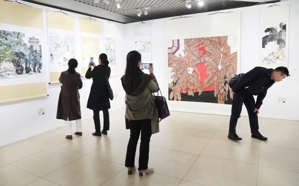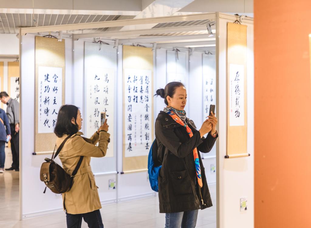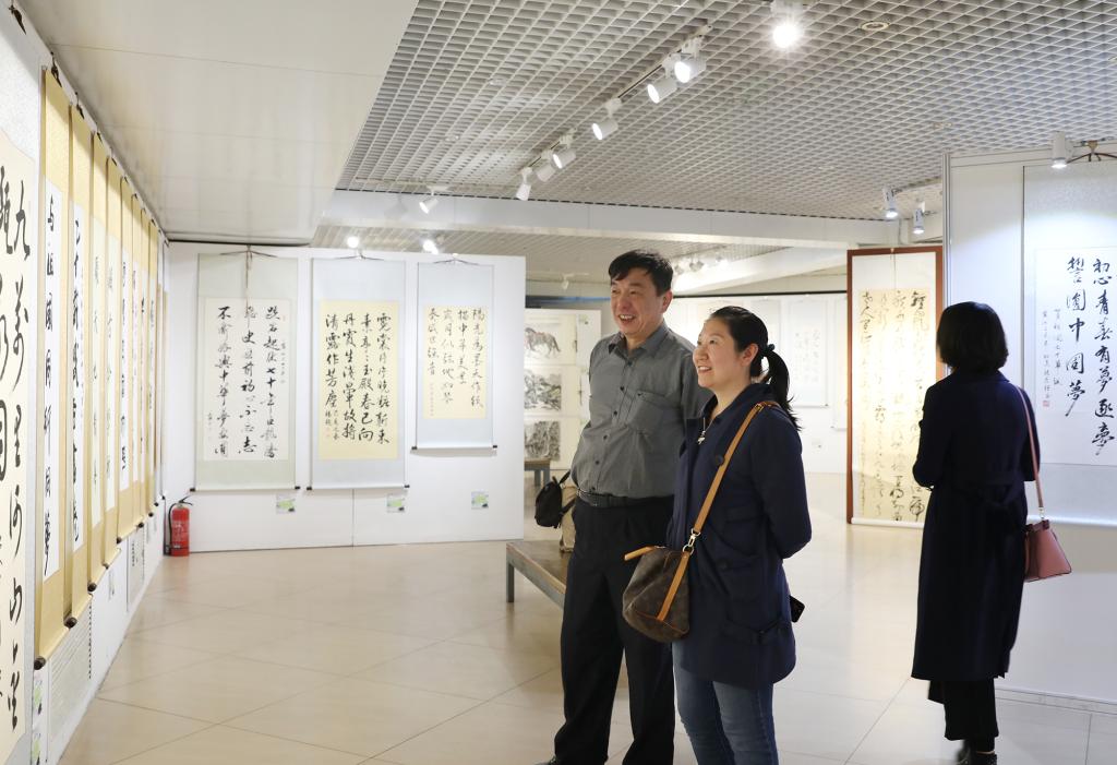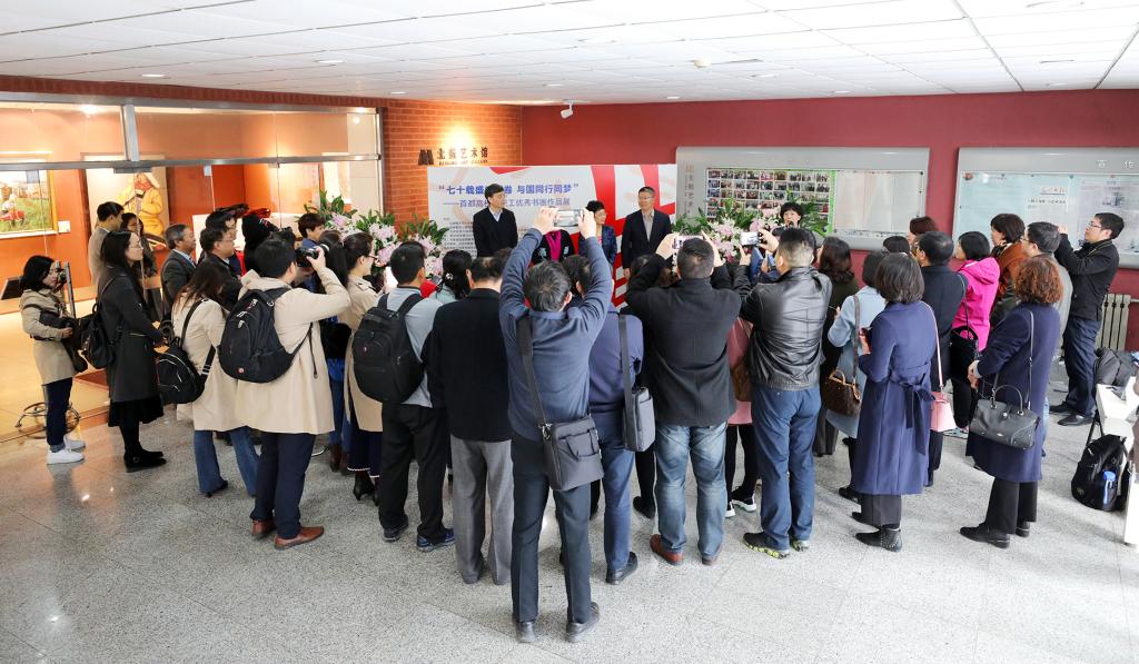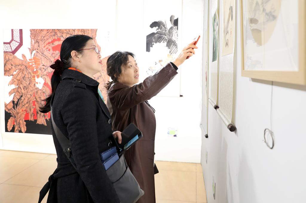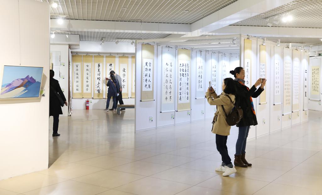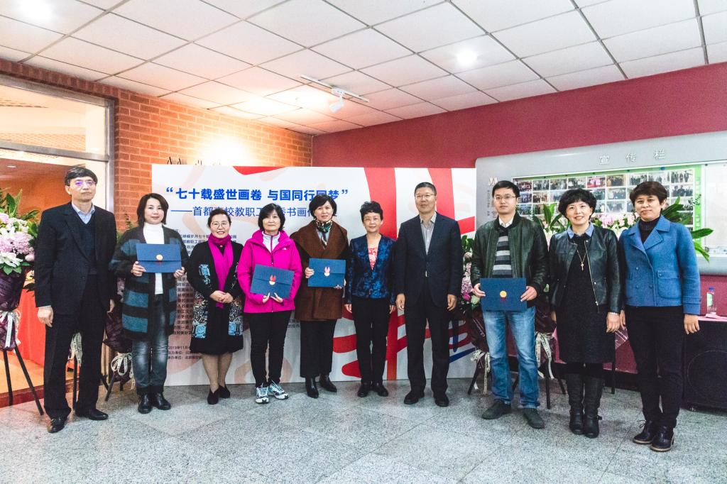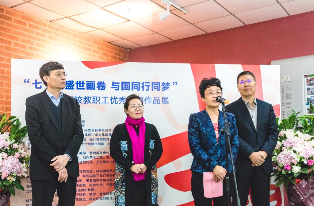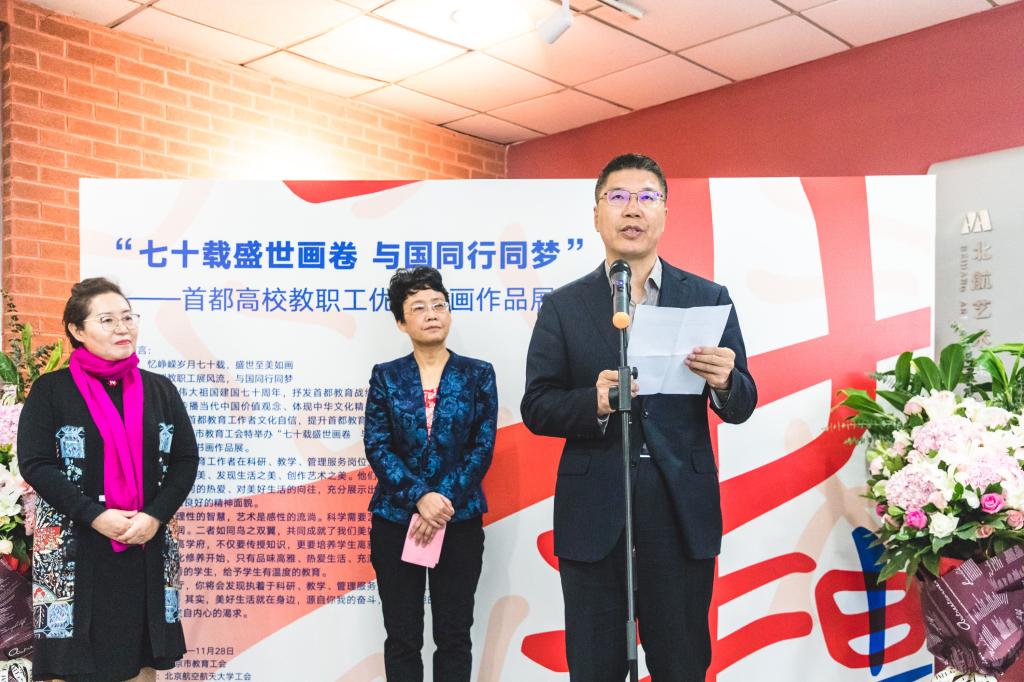 北航新闻网11月4日电(通讯员 张芳/文 记者 邸白鹭 田文浩/摄影) 11月4日下午,由北京市教育工会主办,北京航空航天大学工会承办的“七十载盛世画卷 与国同行同梦”——首都高校教职工优秀书画作品展在北航艺术馆开幕。北京市教育工会主席宋丽静,北航副校长刘树春,各高校工会常务副主席等50余人参加开幕式。