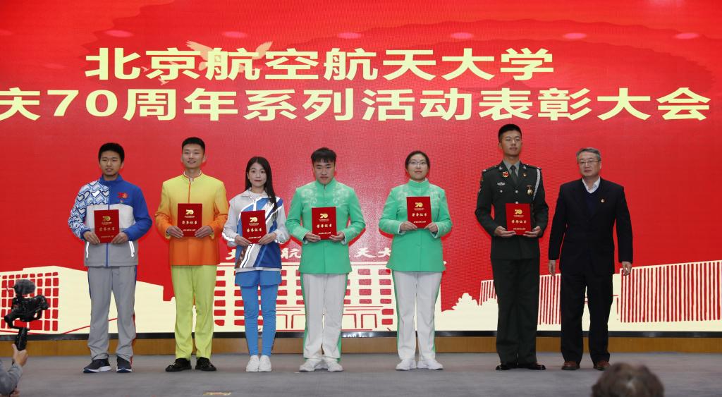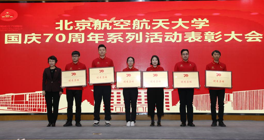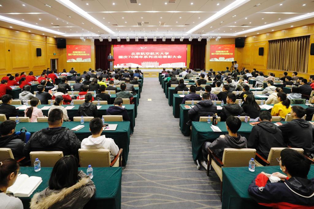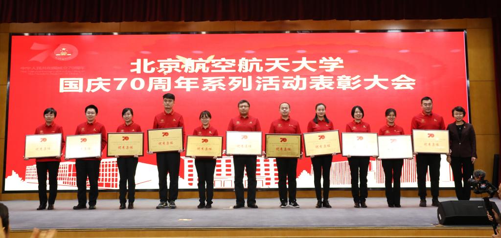 北航新闻网11月15日电(通讯员 金鑫/文 记者 邸白鹭/摄影) 11月14日下午,我校在如心会议中心大报告厅举行国庆70周年系列活动表彰大会,4845名北航师生获得表彰。校党委书记曹淑敏、校长徐惠彬、副校长黄海军、合作单位领导嘉宾等出席大会,学校国庆工作领导小组14个成员单位负责人、各学院负责人、参演师生代表、新生代表参加大会。校党委副书记赵罡主持会议。