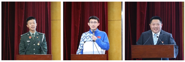 预备役方队队员马乐、志愿者卢阳作为先进个人获奖代表,组织训练处处长田原作为先进工作者代表依次发言