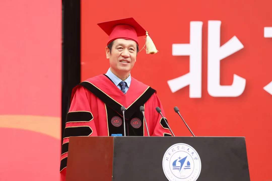 教师代表宫声凯对毕业生们提出希冀,希望他们能够坚守初心、秉持韧劲、积极乐观,祝愿毕业生们“追逐梦想,善作善成,勇做新时代的奋斗者!”校友代表孙聪希望广大毕业生始终牢记“德才兼备、知行合一”的校训,在未来学习和工作中永远向上、初心不忘,在祖国航空航天事业的历史画卷中抒写新的辉煌。生物与医学工程学院学生何源作为2020届本科毕业生代表视频发言,以“追梦”为主题回顾了大学四年学习、科研、实践、生活中的记忆点滴,表达了对母校、对老师的感激之情。