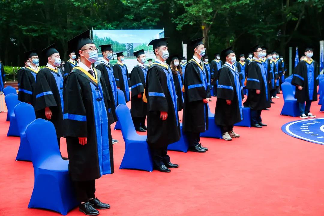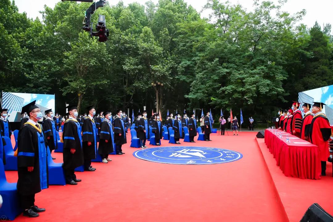 伴随着庄严的国歌声,毕业典礼正式拉开帷幕。全体毕业生“云端”齐聚,68名在现场的毕业生和3427名毕业生在屏幕前通过观看直播,共赴一场别样的青春盛典。