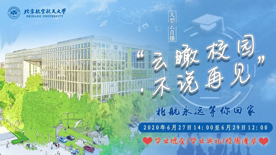 北航新闻网6月29日电(记者 王晴/文 邸白鹭 宋超/摄影)6月27日14:00-6月29日12:00,在这个特殊的毕业季,北航特别打造了持续30个小时的“云瞰校园·不说再见”大型云直播,为毕业生们送上真挚祝福。