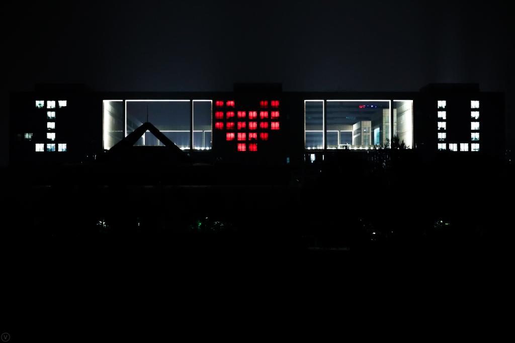 作为北航最有历史感的建筑,快要70岁的老主楼上妆点一颗巨大的红心,简洁、有力地诠释“爱祖国、爱航空、爱航天、爱北航”。