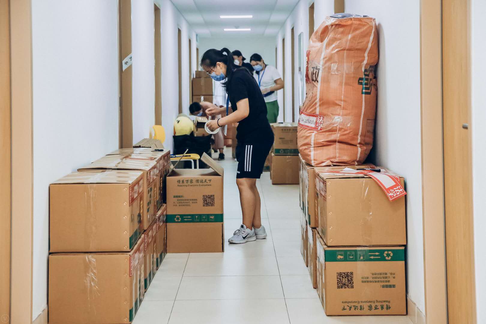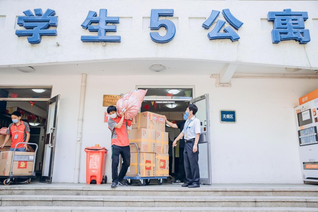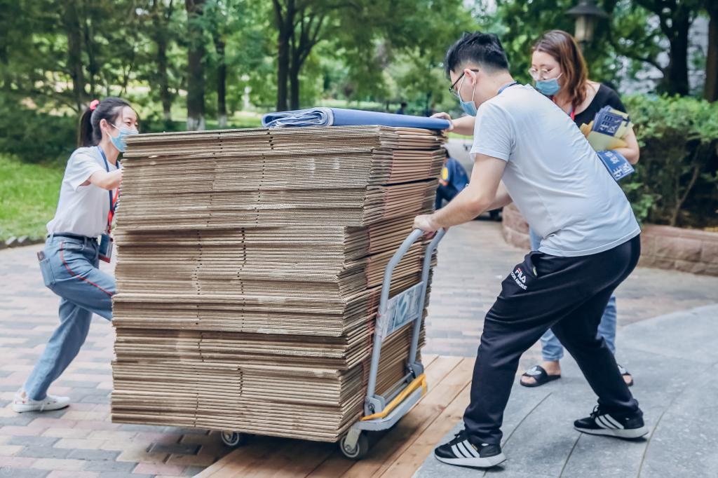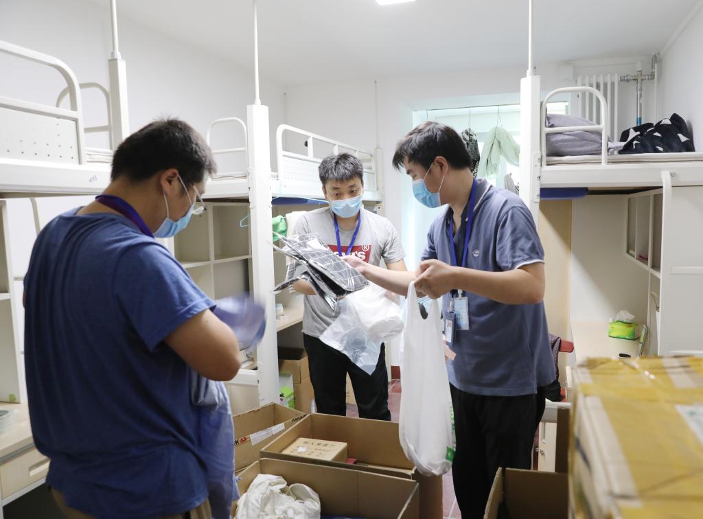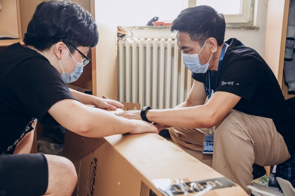 7月5日上午8点,北航2020届毕业生行李打包运送工作正式启动。在学校新北区宿舍、南区宿舍、大运村宿舍,各个学院的老师们齐聚楼下,整装待发,前往宿舍,为同学们打包行囊。很多学院的书记、院长等学院领导带领老师们走进宿舍,同老师们一起为同学整理物品,打包装箱。