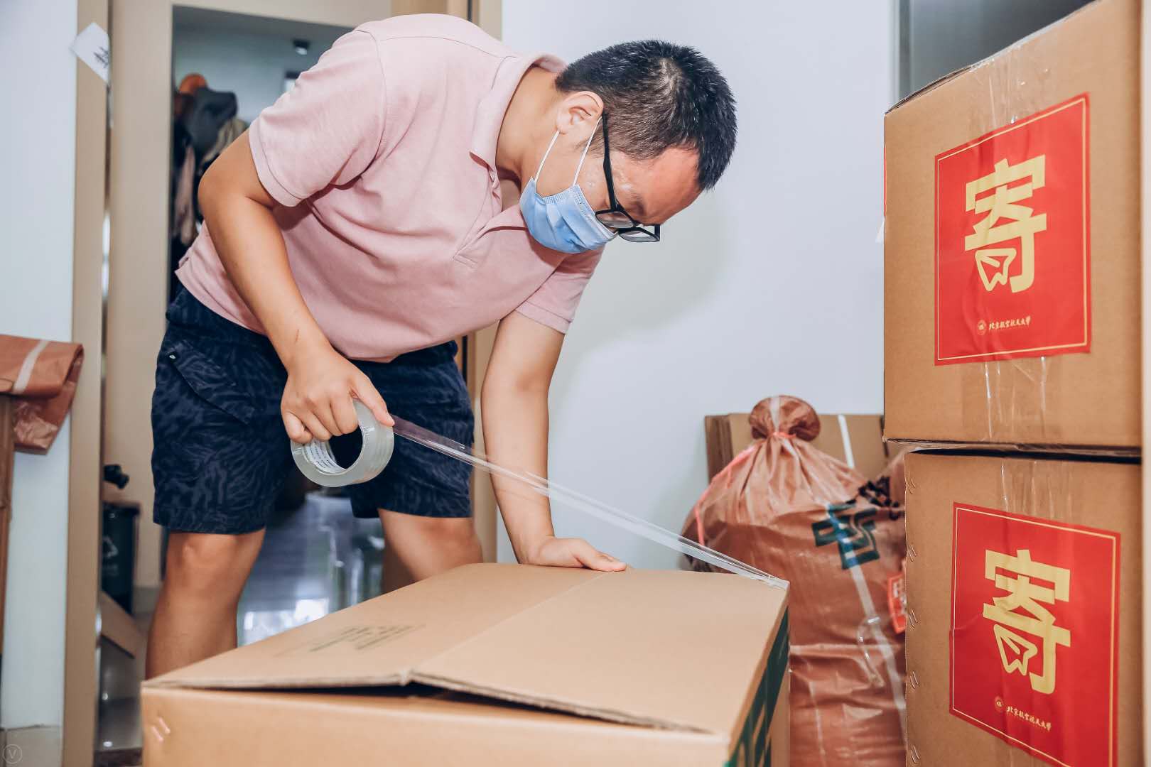 外国语学院在打包过程中,为了给大家保留最美好最完整的校园记忆,老师们竭尽所能地满足学生们的个性化需求。为了合理分配行李箱同时保证箱内物品完好地到达学生手中,老师们一遍遍地包裹,一次次地尝试各种摆放方式,每一件行李都凝结了老师们的细心、耐心与爱心。