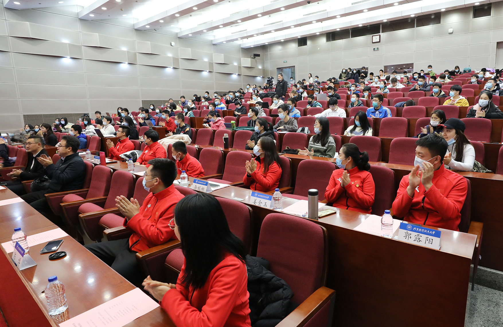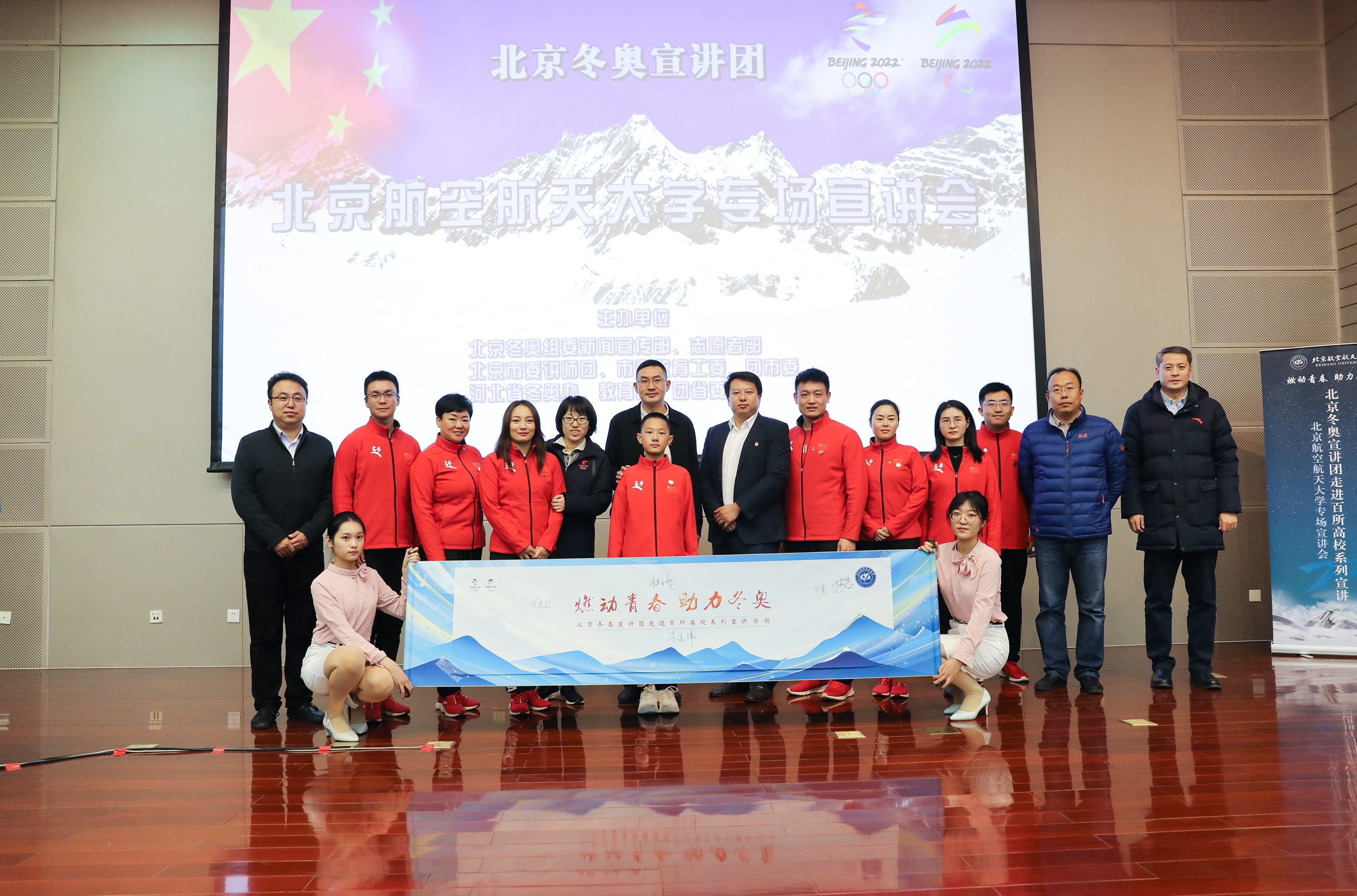 北航新闻网11月27日电(通讯员 丁瑞云/文 记者 邸白鹭 李淼 石洪基/摄影)11月25日下午,“燃动青春 助力冬奥——北京冬奥宣讲团走进百所高校系列宣讲活动北京航空航天大学专场宣讲会”在我校新主楼第一报告厅举行,北京冬奥宣讲团成员向北航学子讲述了他们与冬奥的故事。校党委副书记程波,北京冬奥组委新闻宣传部综合处处长林灵思,校宣传部、学生工作部、体育部、团委负责人出席本次活动。为落实疫情防控常态化相关措施,本次宣讲采用线下观看与线上直播相结合的方式,共有近1000名师生观看了本次活动。