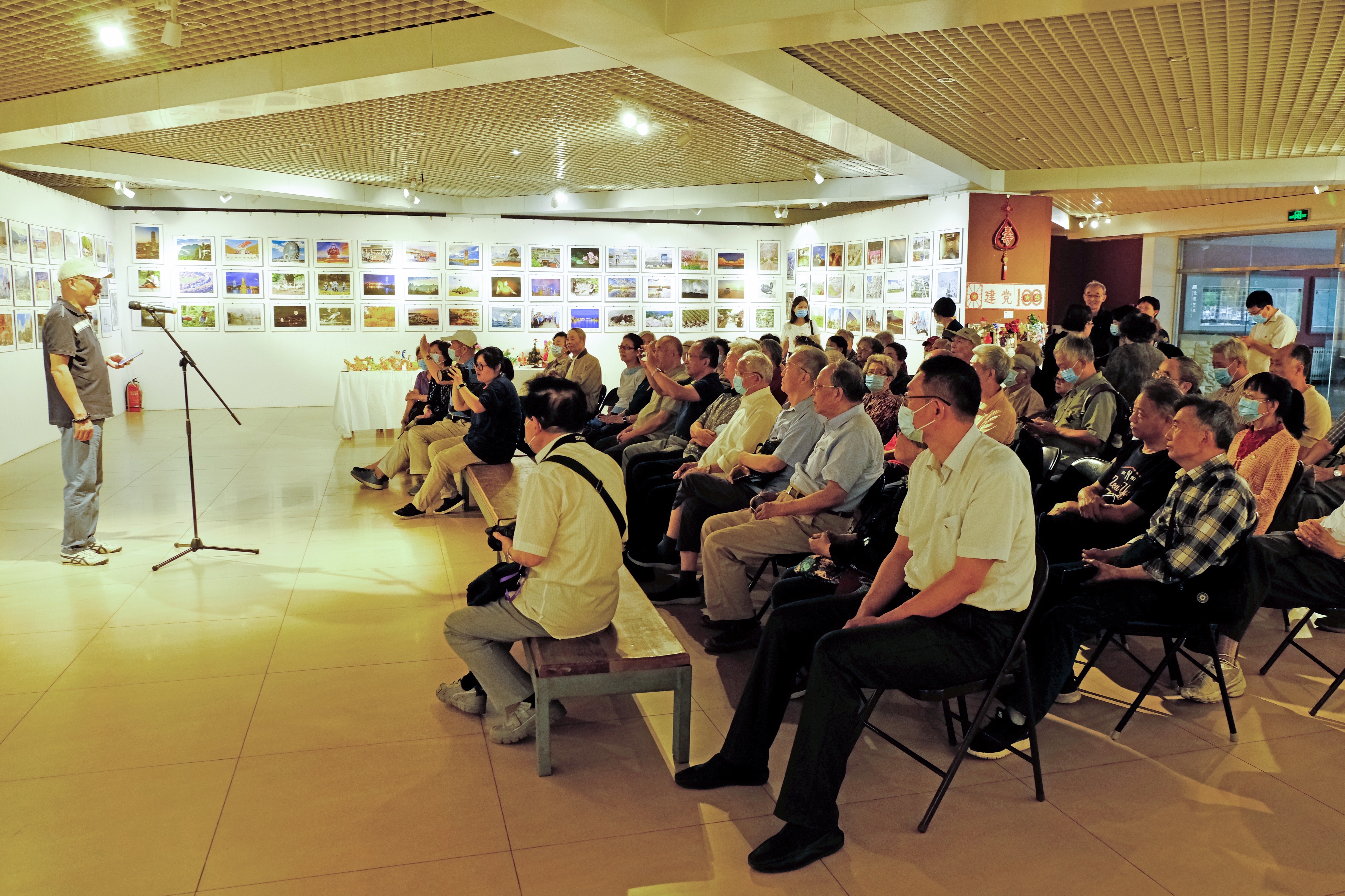 老同志们在北航艺术馆驻足观看,三五成群观看揣摩、点评分享作品的精美精妙、选题新颖、立意深远。