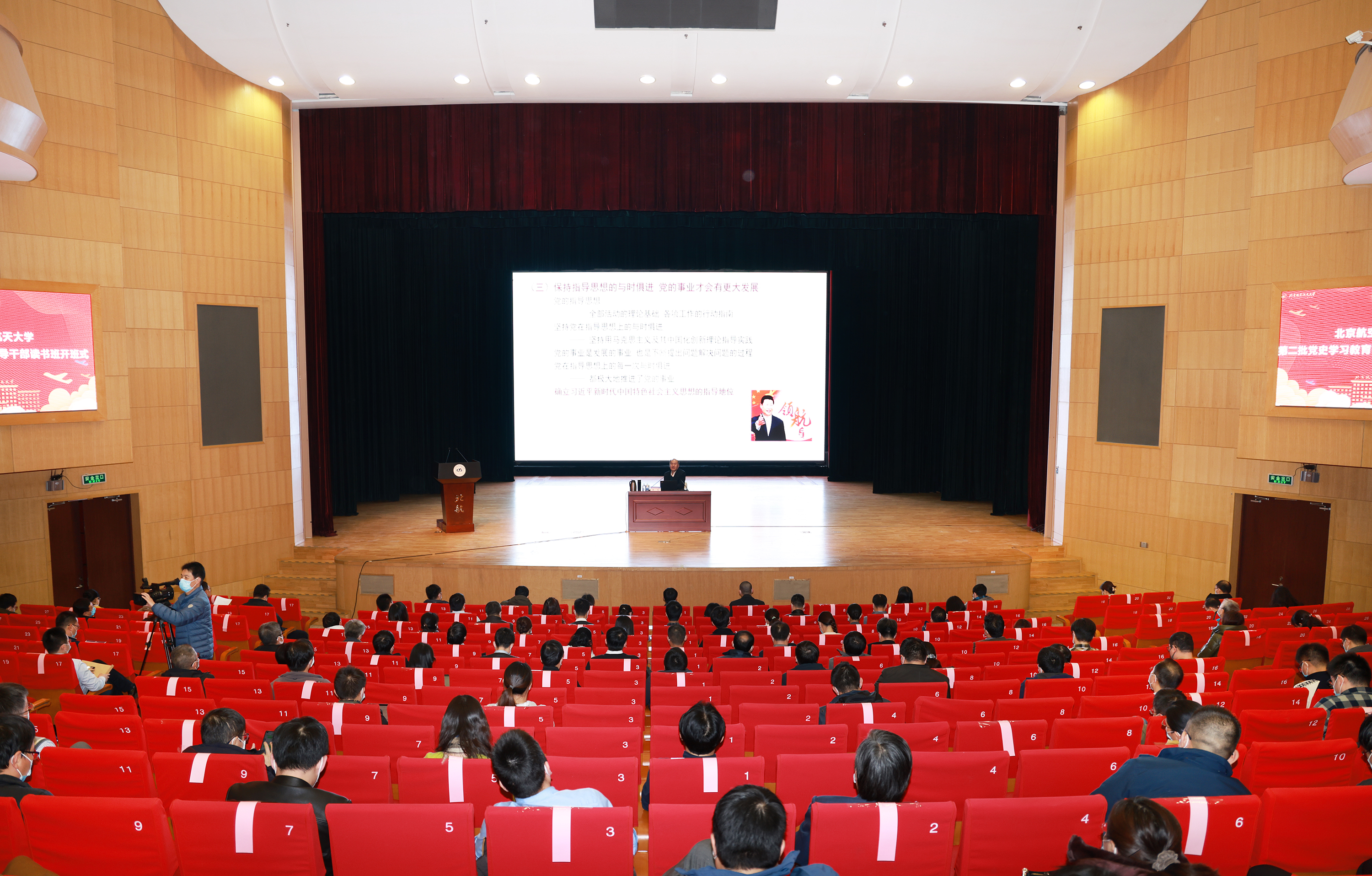 在校领导讲思政工作中融入党的十九届六中全会精神,引领全校师生从党的光辉历史中汲取精神滋养,从党的优良传统中传承智慧力量,奋勇前行。11月18日,校长徐惠彬院士结合党的十九届六中全会精神为本科生入党积极分子讲授专题党课,寄语同学们传承空天报国精神,将个人成长与发展融入国家需要。徐惠彬指出,一部中国航空航天史,就是北航的奋斗史。建校69周年来,一代代北航人把服务国家作为最高追求,空天报国精神始终是北航人不断前进的“发动机”。他寄语同学们要将个人成长与发展融入国家的需要,为实现中华民族伟大复兴贡献青春力量。与会的入党积极分子纷纷表示,要深入学习贯彻党的十九届六中全会精神,勿忘昨天的苦难辉煌,无愧今天的使命担当,不负明天的伟大梦想,埋头苦干、勇毅前行,努力成长为堪当民族复兴重任的时代新人。