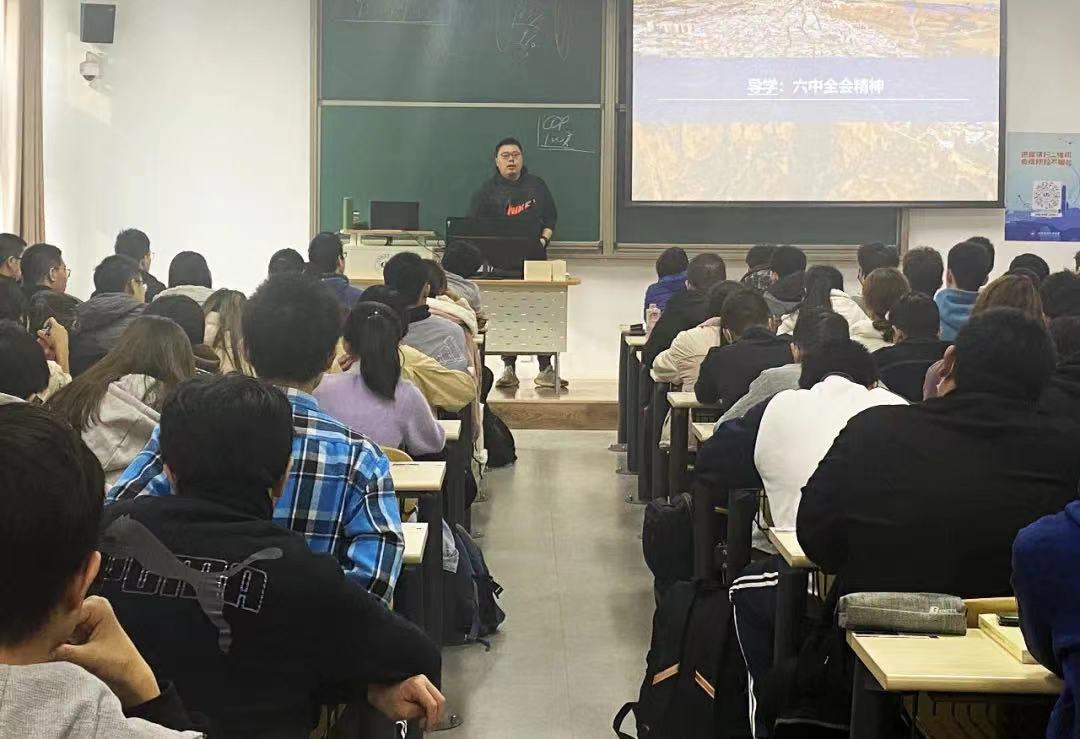 学校把党的十九届六中全会精神及时纳入思政课教学,推动第一时间进课堂。11月18日,马克思主义学院青年教师孙润南讲述了党的十九届六中全会精神专题课。11月19日,马克思主义学院组织习近平新时代中国特色社会主义思想概论课题组集体进行了专题备课,并在本周的“思想道德与法治”“毛泽东思想和中国特色社会主义理论体系概论”“习近平新时代中国特色社会主义思想”等思政课中及时纳入全会精神。