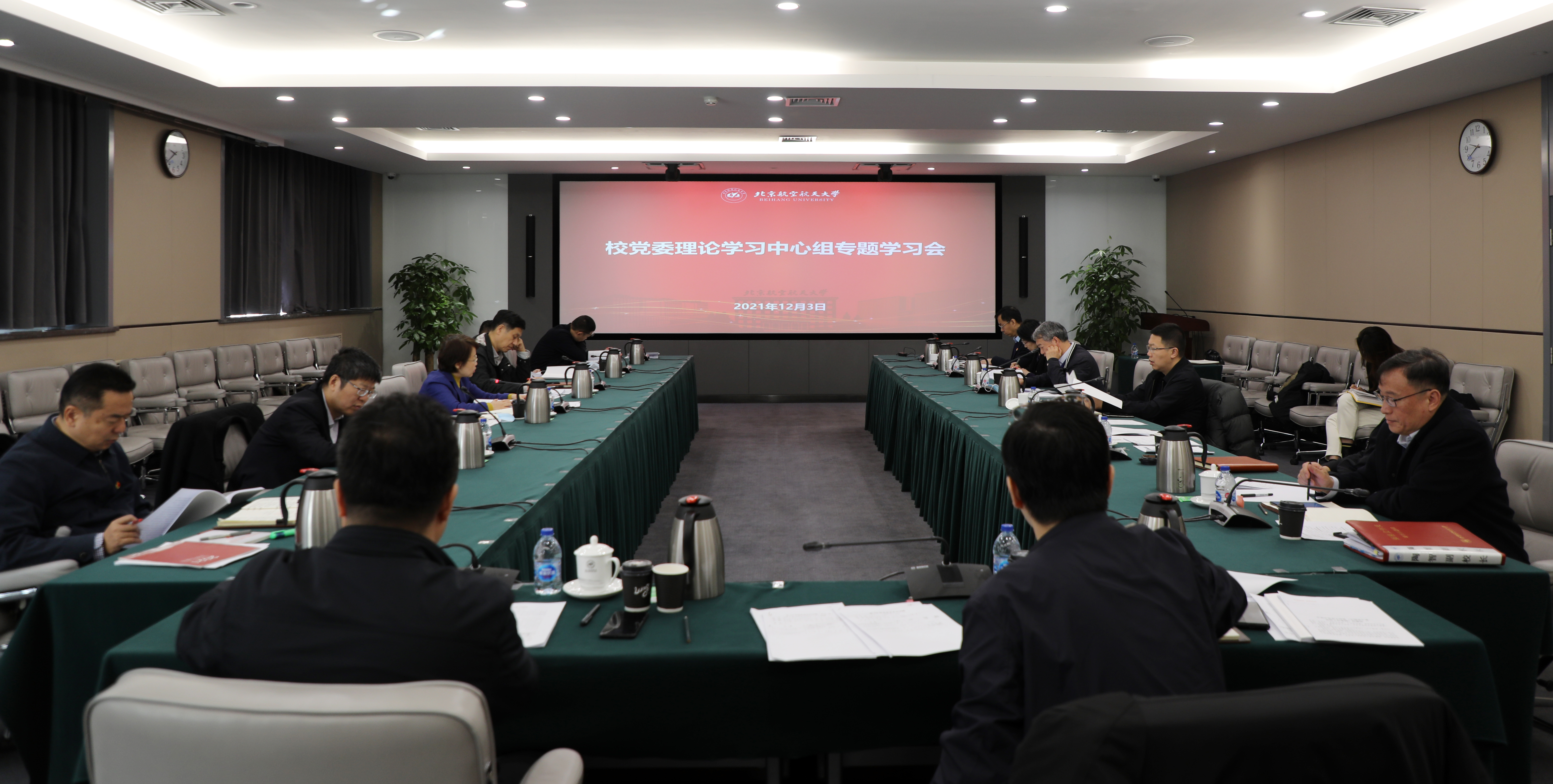 北航新闻网12月3日电(记者 王静涵/文 孙也程/摄影)12月3日上午,我校在如心会议中心中报告厅举行党委理论学习中心组学习会,深入学习贯彻党的十九届六中全会精神,学习习近平总书记关于领导干部担当作为和外宣工作的重要论述?;嵋橛傻澄榧遣苁缑糁鞒?,学校相关职能部处负责人列席会议。