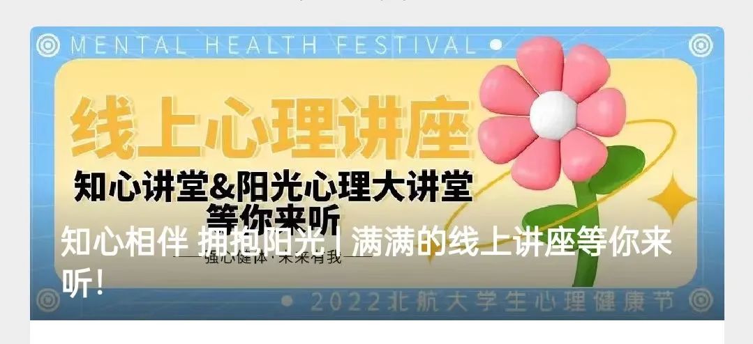 为帮助同学们做好心理防护,两校区不断线开展线上心理咨询服务,举办“知心讲堂”,邀请心理学知名专家学者开展《积极心态 幸福人生》、《大学生睡眠健康管理》等主题讲座,线上开展“心理绘画沙龙”、“电影沙龙”等内容丰富、形式多样的积极心理体验沙龙活动。