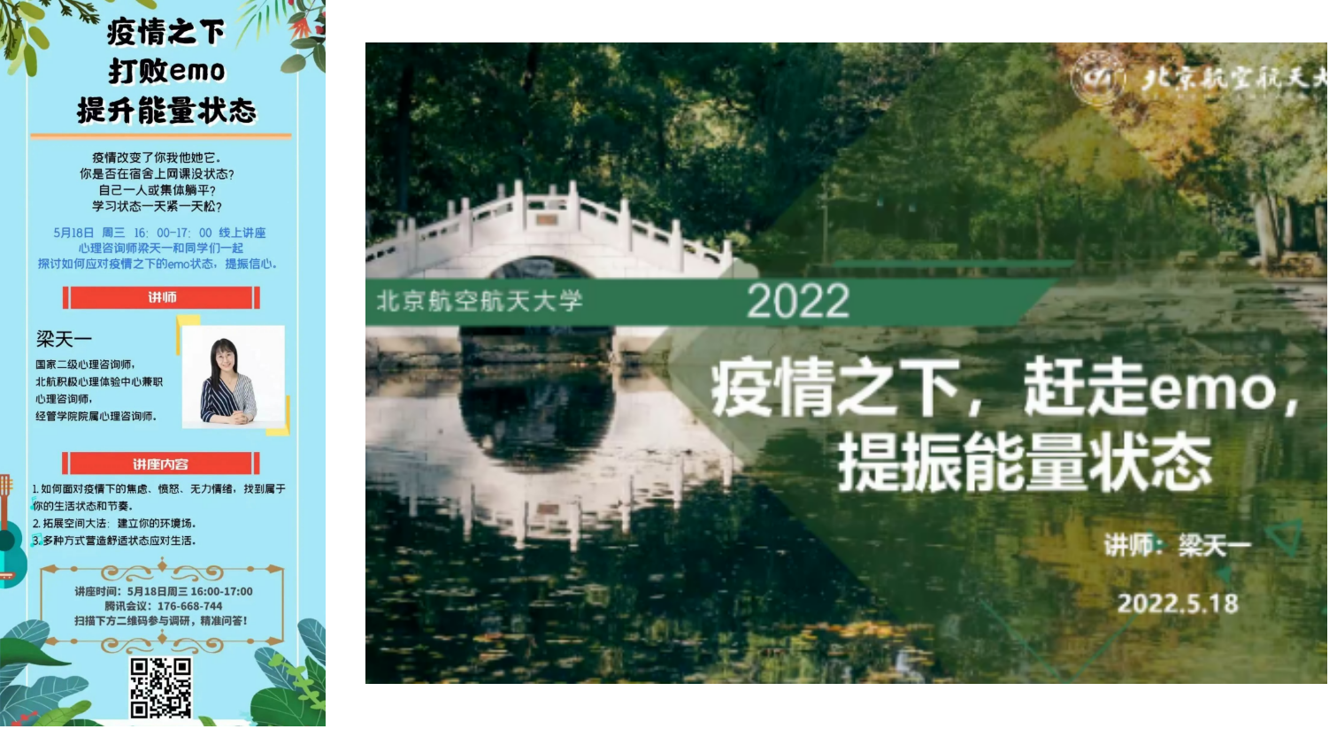 各学院组织线上线下课程讲座,为封闭期间的同学们排忧解难。