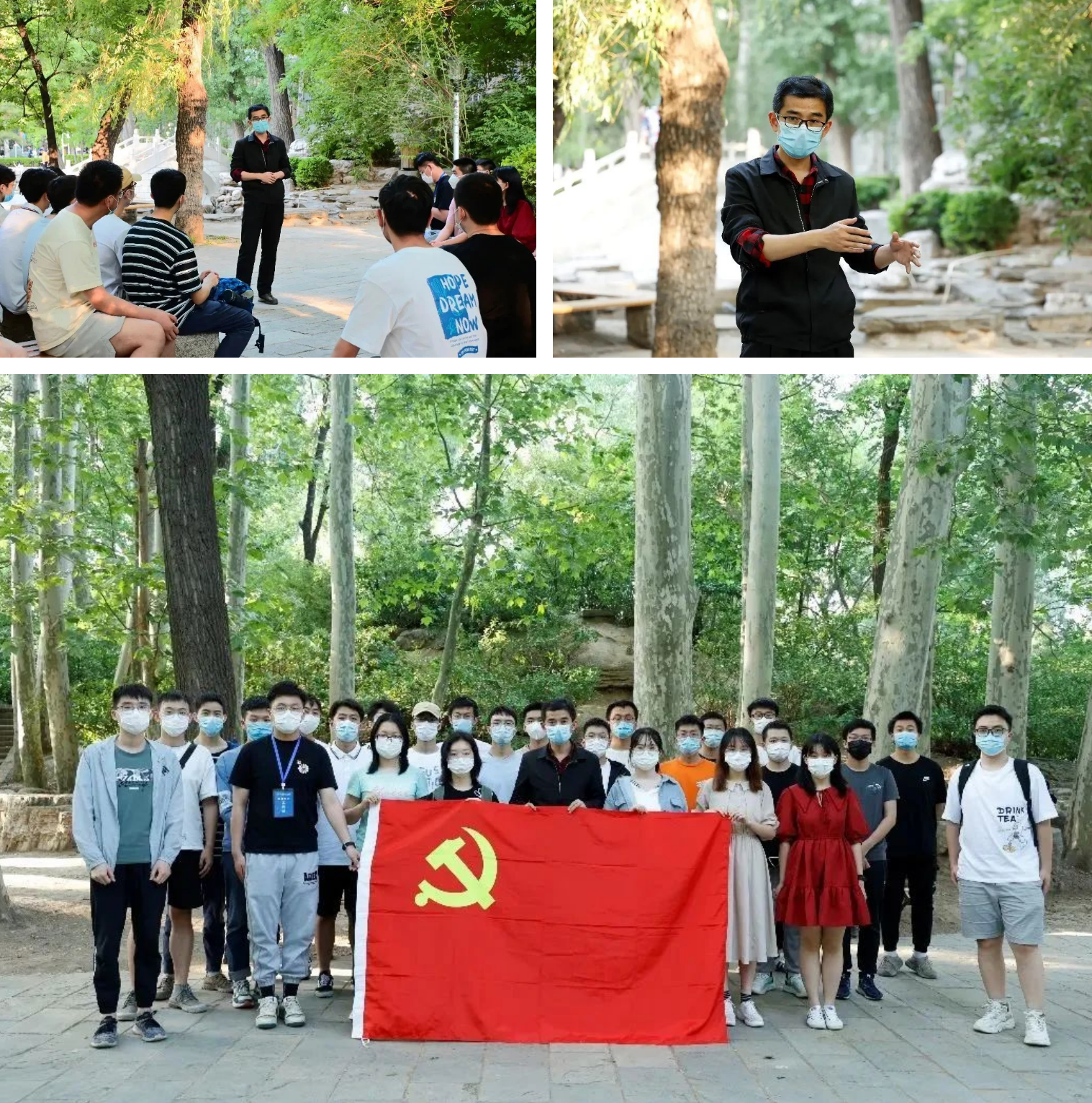 遵守防疫要求,落实党员责任,航空科学与工程学院本科生1905党支部在绿园开展专题党课。