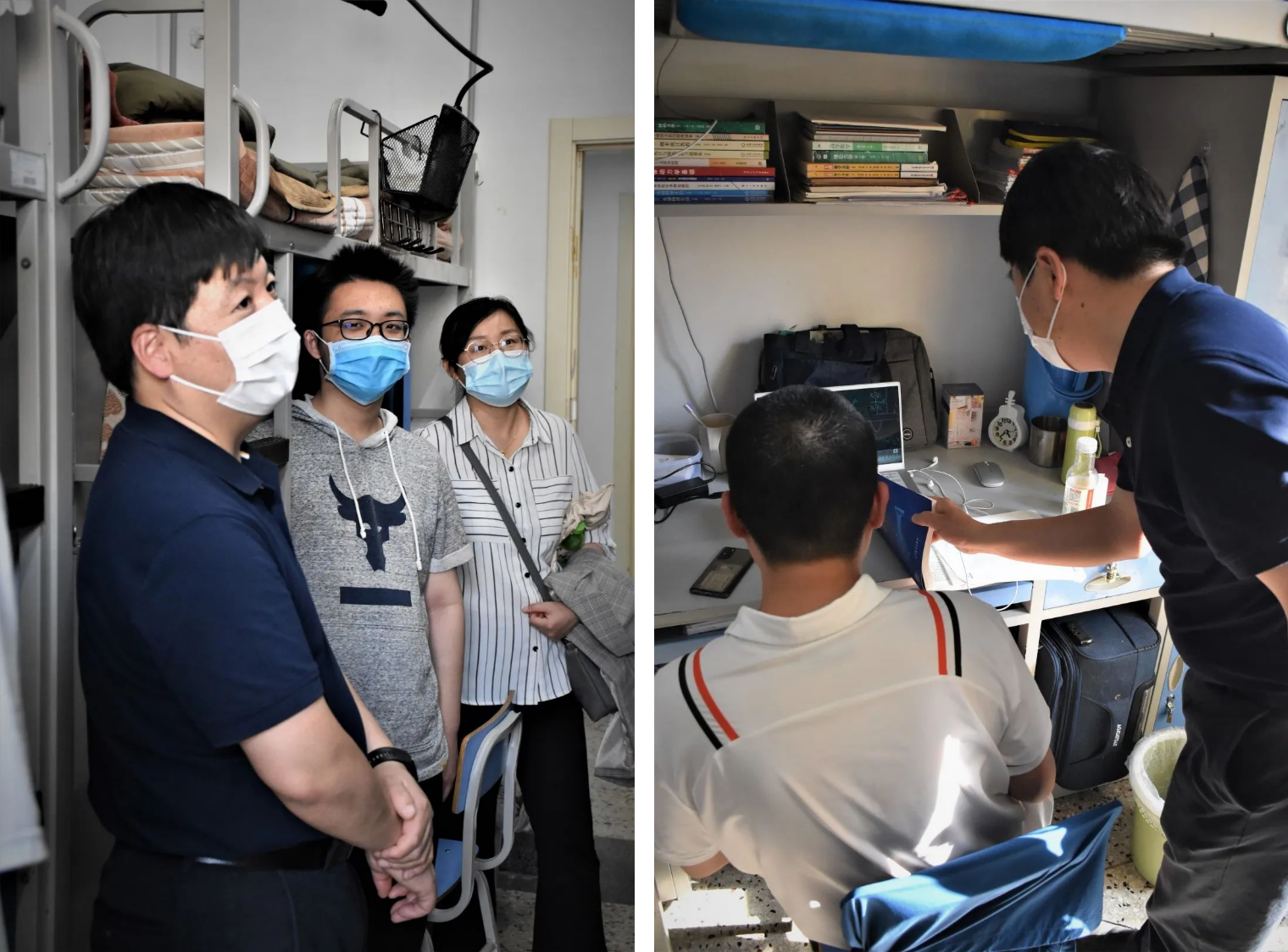 校园封闭以来,各学院书记、院长、专兼职辅导员全覆盖走访学生宿舍,询问大家上网课、科研、求职等现状,了解同学们的思想动态和生活需求,帮助大家解决实际困难。
