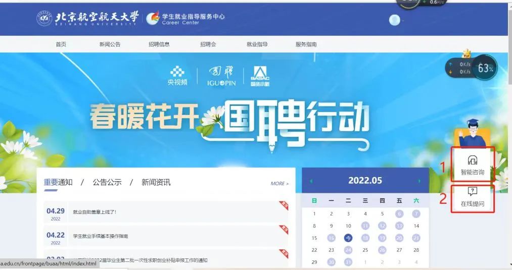 使用方式:北航就业资讯网右侧咨询悬浮窗