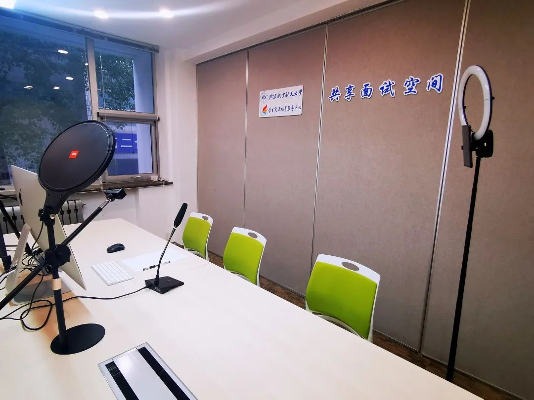为了满足求职学生线上面试的需求,学校迅速采购专业视频面试设备,开发线上预约系统,搭建出共享面试空间,为毕业生视频面试做好场地、设备保障,助力求职更加安全、顺利。