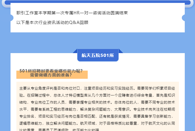 超过60名来自航空、航发、航天、电科、船舶及其它领域重点企业的资深人力专家组成北航学生职业发展专家库,持续开展线上线下相结合的一对一专业化行业咨询服务,帮你了解一线行业资讯,清晰岗位需求,进行更科学的职业选择,开展更有效的就业能力准备。