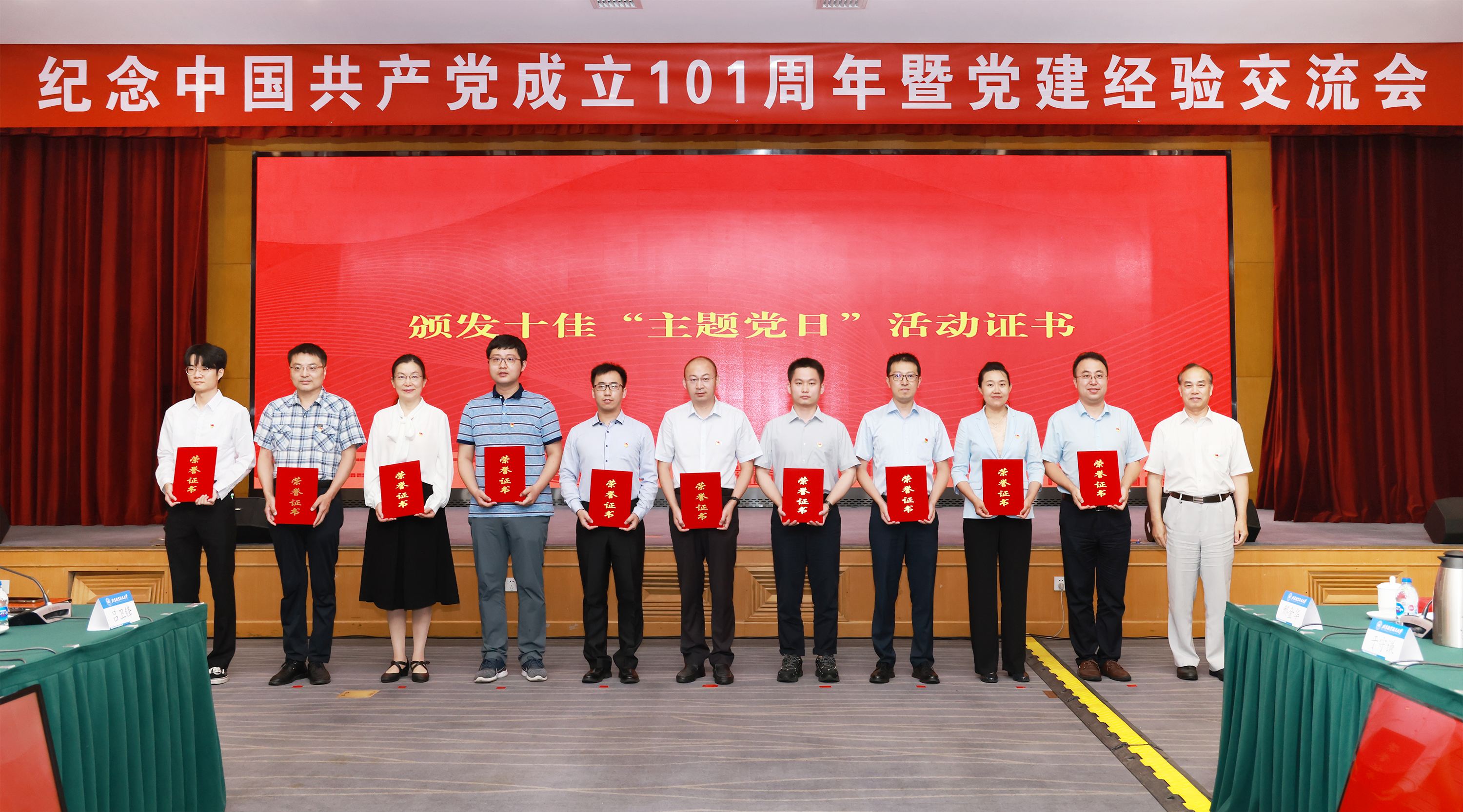 党委副书记、纪委书记何新洲为获奖单位颁发“十佳”主题党日活动证书