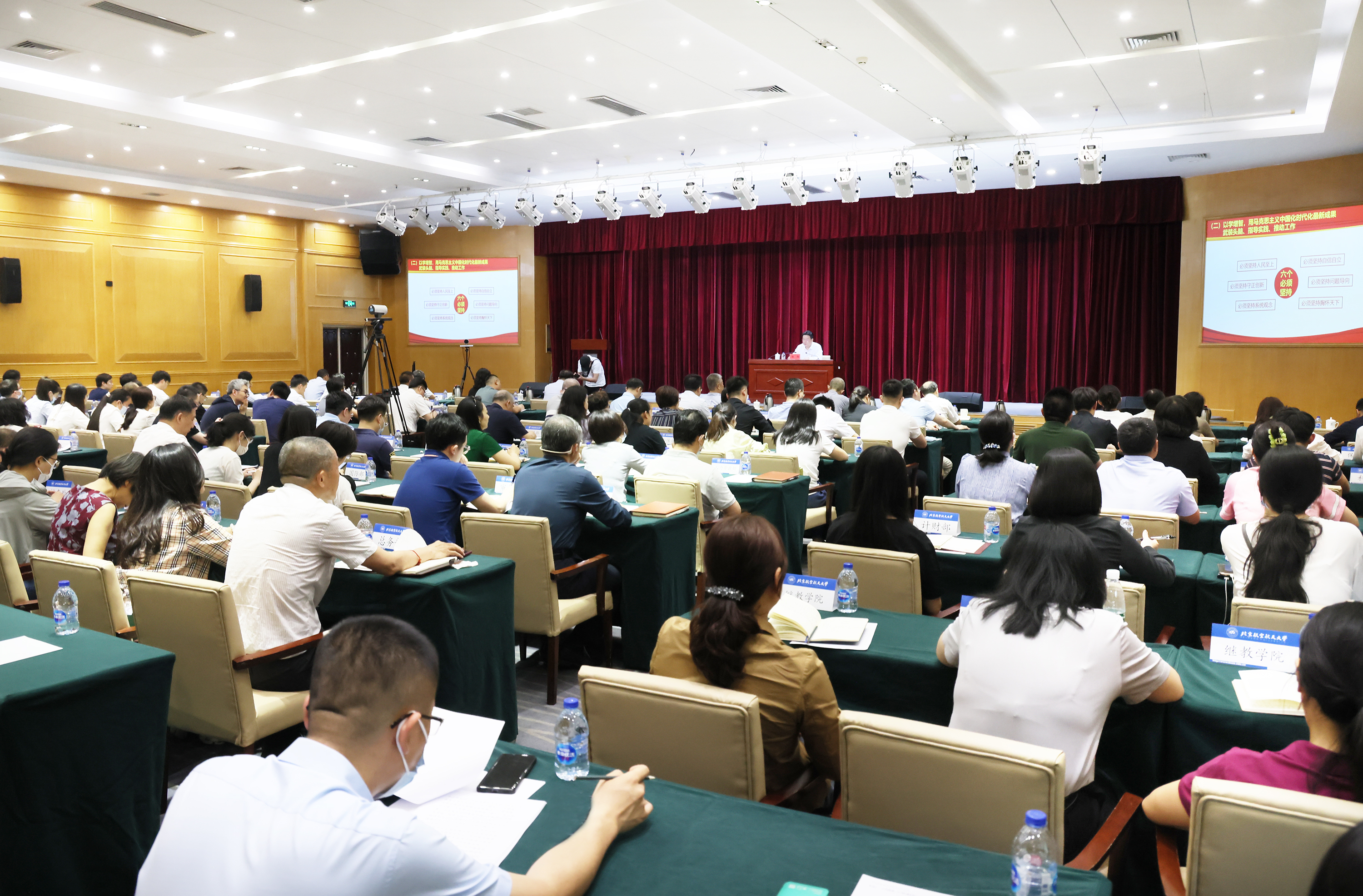 市委主题教育第二巡回指导组副组长于凤英,市委教育工委分管日常工作的副书记张革,市委教育工委副书记、市教委主任李奕,市委教育工委、市教委班子成员、两委机关全体干部、直属单位党政负责人,以及北京航空航天大学领导班子成员、师生代表,中国音乐学院领导班子成员、师生代表分别在主会场和分会场参加党课。