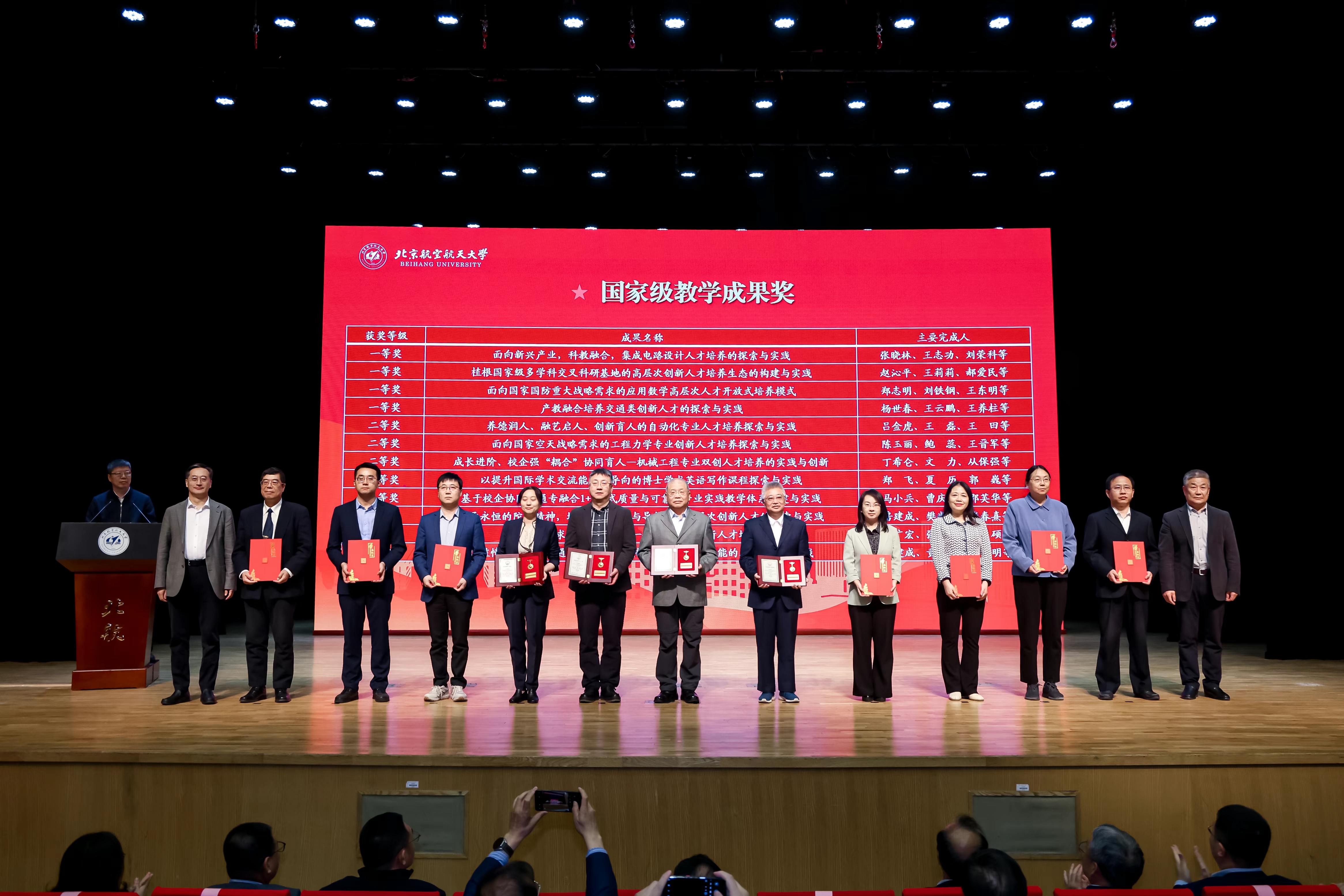 2023年,北航获得多项重大教育教学奖励,人才培养关键业绩显著提升?;嵋槎怨壹督萄С晒?、全国高?;拼竽晔浇淌ν哦?、教育部虚拟教研室建设试点、宝钢优秀教师、第二批国家级一流本科课程、全国工程类专业学位研究生在线示范课程等多个奖项的获奖团队和教师代表进行了表彰。