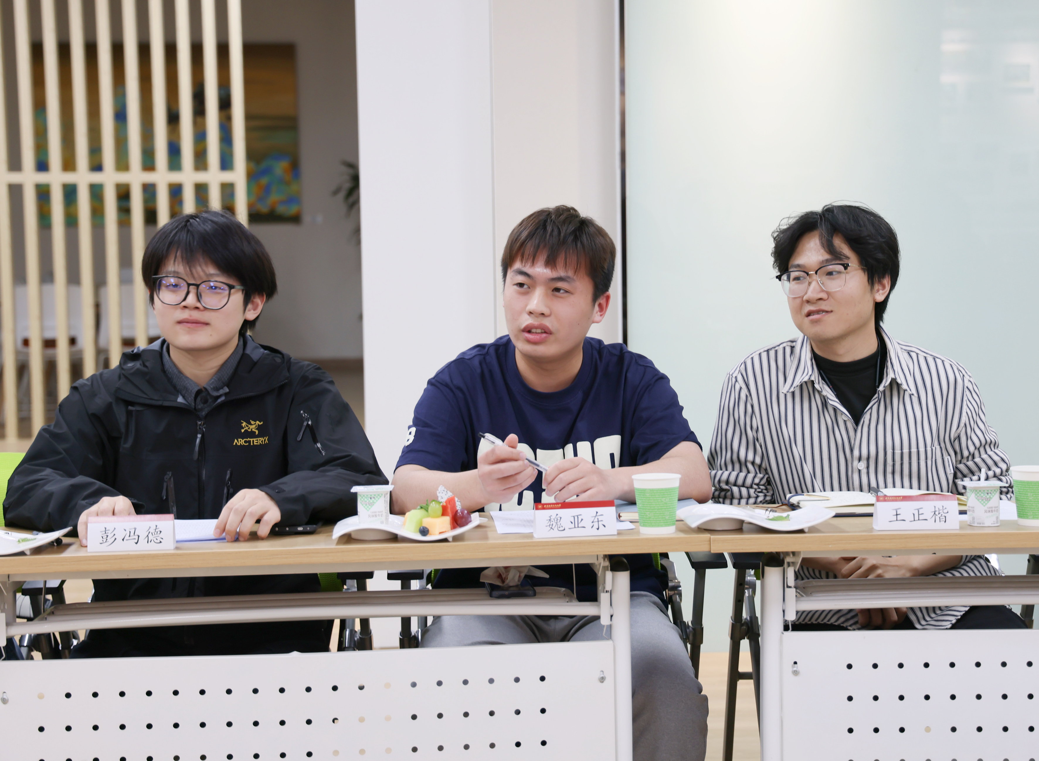 同学们踊跃发言,朱垚洁、茹兰雅结合个人上课体验,希望优化课程授课时长。魏亚东、薄丹雅表达了对学校丰富的奖助学金的感谢,希望加大对获奖学生榜样事迹的宣传力度。沙奕帆、熊梦宇分享了参加科创项目的经历。曾心蕊分享了数学基础课程的学习感受,希望加强引导学生应用数学解决实际问题。林钰琪、牛钰浩结合自身实习经历及职业规划,建议学校提供更加优质的职业生涯指导。赵宇轩谈到了有关提高课堂效率的思考,希望加强课堂纪律的监督管理。强鑫分享了关于博士研究生培养方案的思考。王诗雨分享了人工智能对于学习方式的影响。彭冯德提出了“科研课堂”设置的相关建议。王正楷、赵逍遥表示,作为学生干部,将促进学生组织充分发挥在学风建设中的积极作用,成为学校与学生间最为牢固的沟通桥梁纽带。