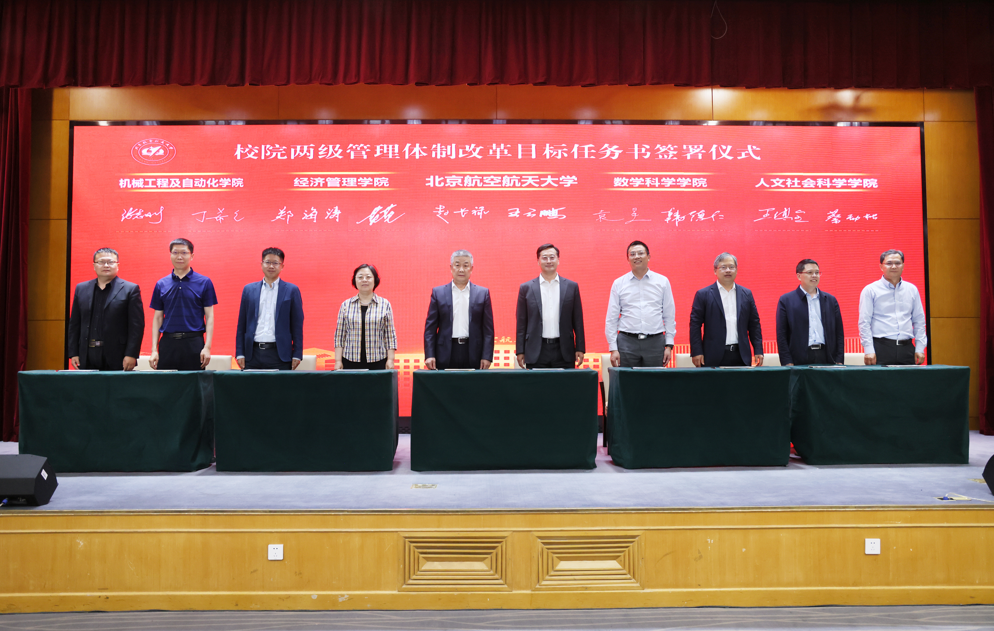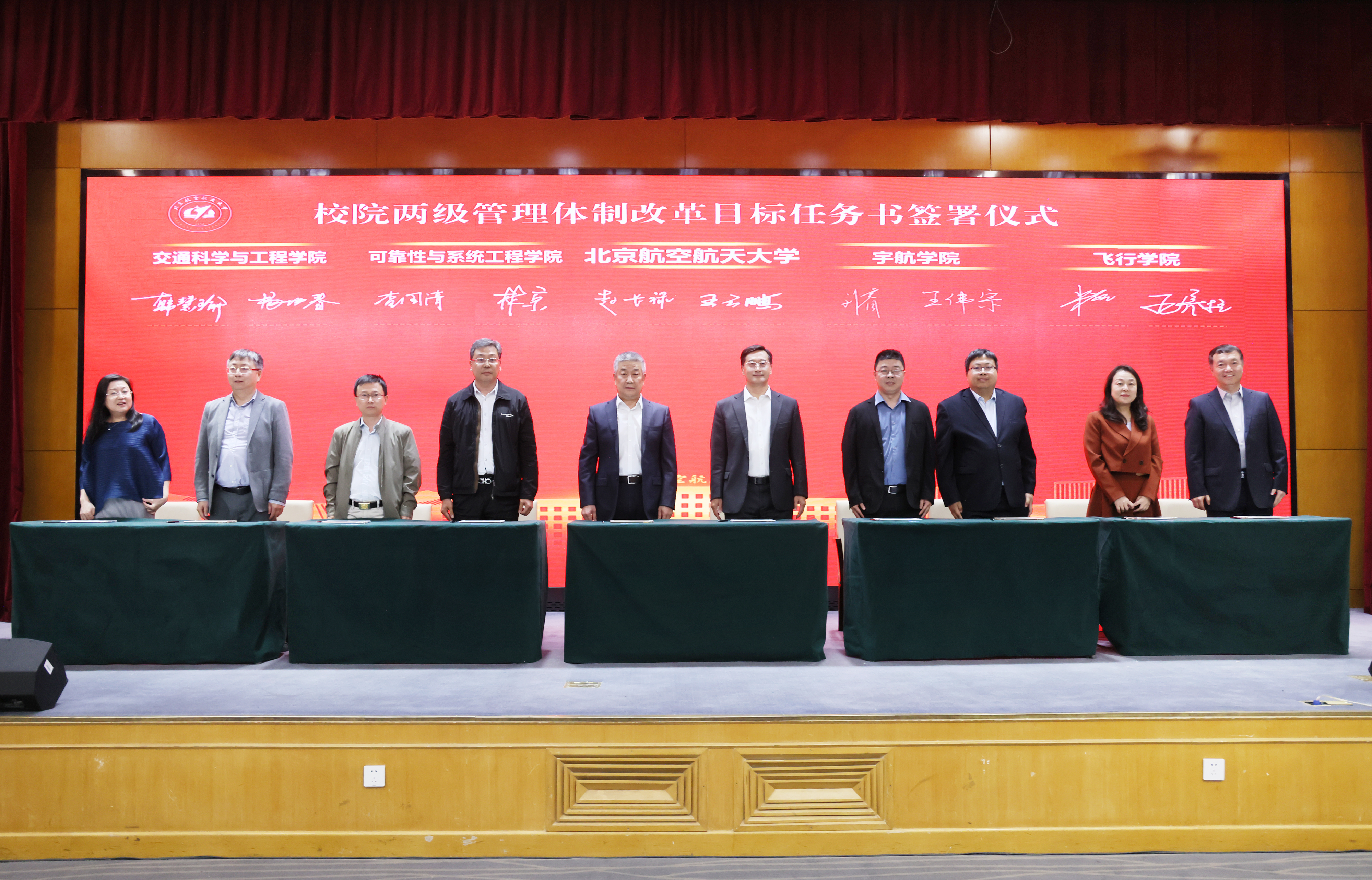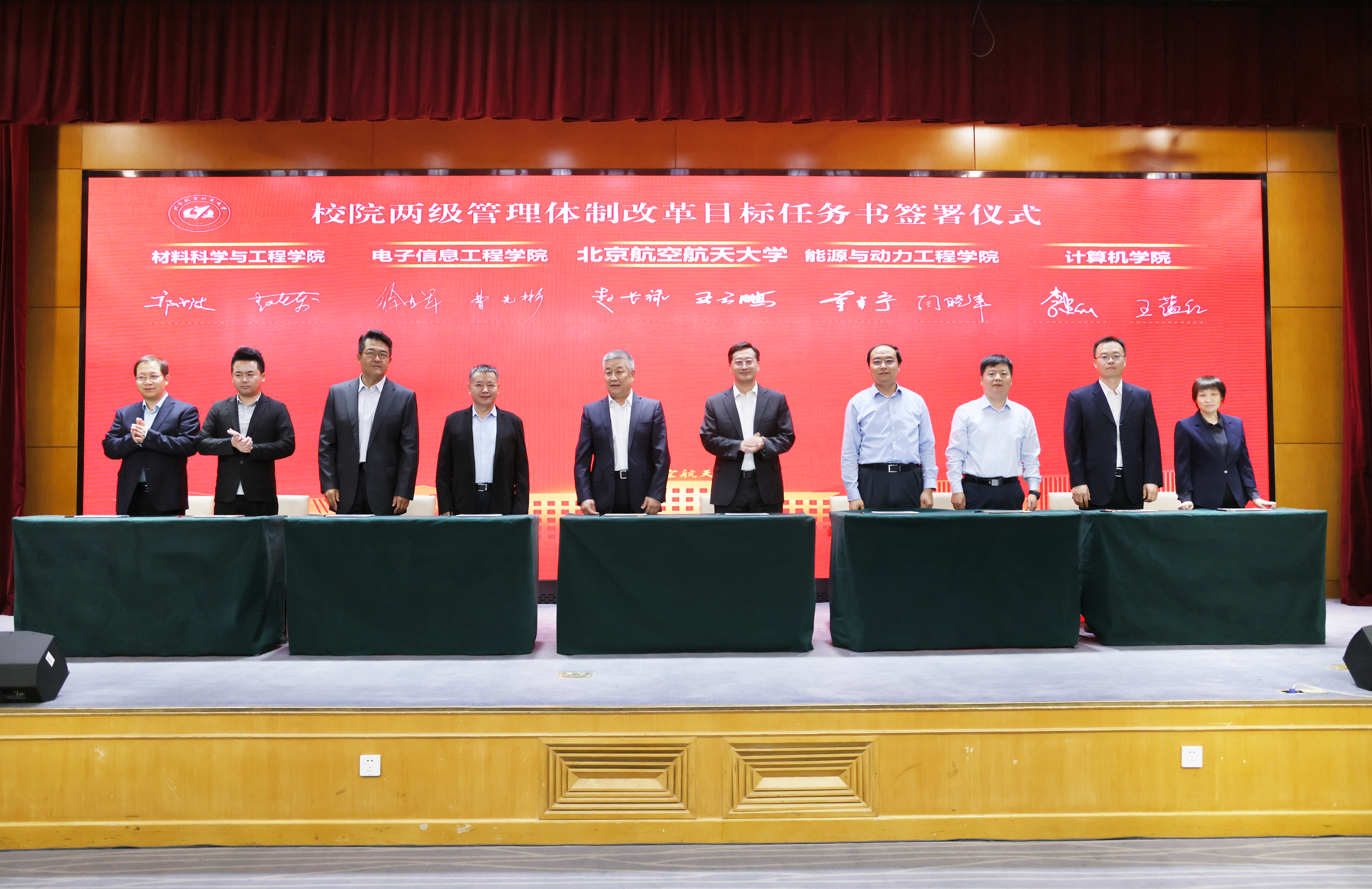 赵长禄、王云鹏和交通科学与工程学院、可靠性与系统工程学院、宇航学院、飞行学院签署校院两级管理体制改革目标任务书