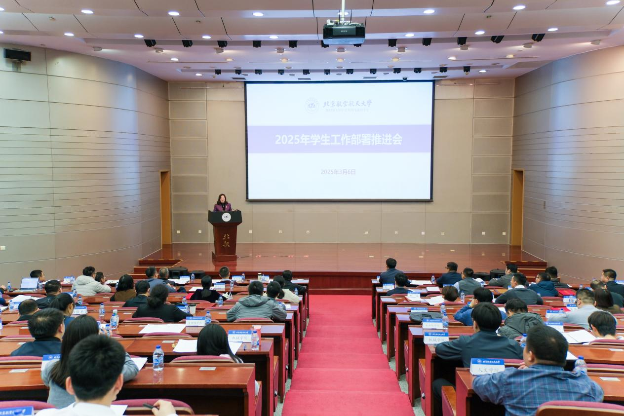 会上,学生工作部宋晓东解读了《北京航空航天大学2025年学生工作要点》,就全面加强学生思政工作内涵建设、教育引导学生坚定理想信念、持续提高学生综合素质能力、健全学生成长服务长效机制和全面提升学工队伍履职能力做了重点工作说明。学生中心纪一鹏就促进毕业生高质量充分就业和加强学生关心关爱与服务保障做了重点工作说明。校团委刘洋就持续加强理想信念教育和聚焦提升学生综合能力做了重点工作说明。学生工作部有关负责同志还围绕辅导员队伍建设要点和智慧思政学工数字化平台建设做了汇报。