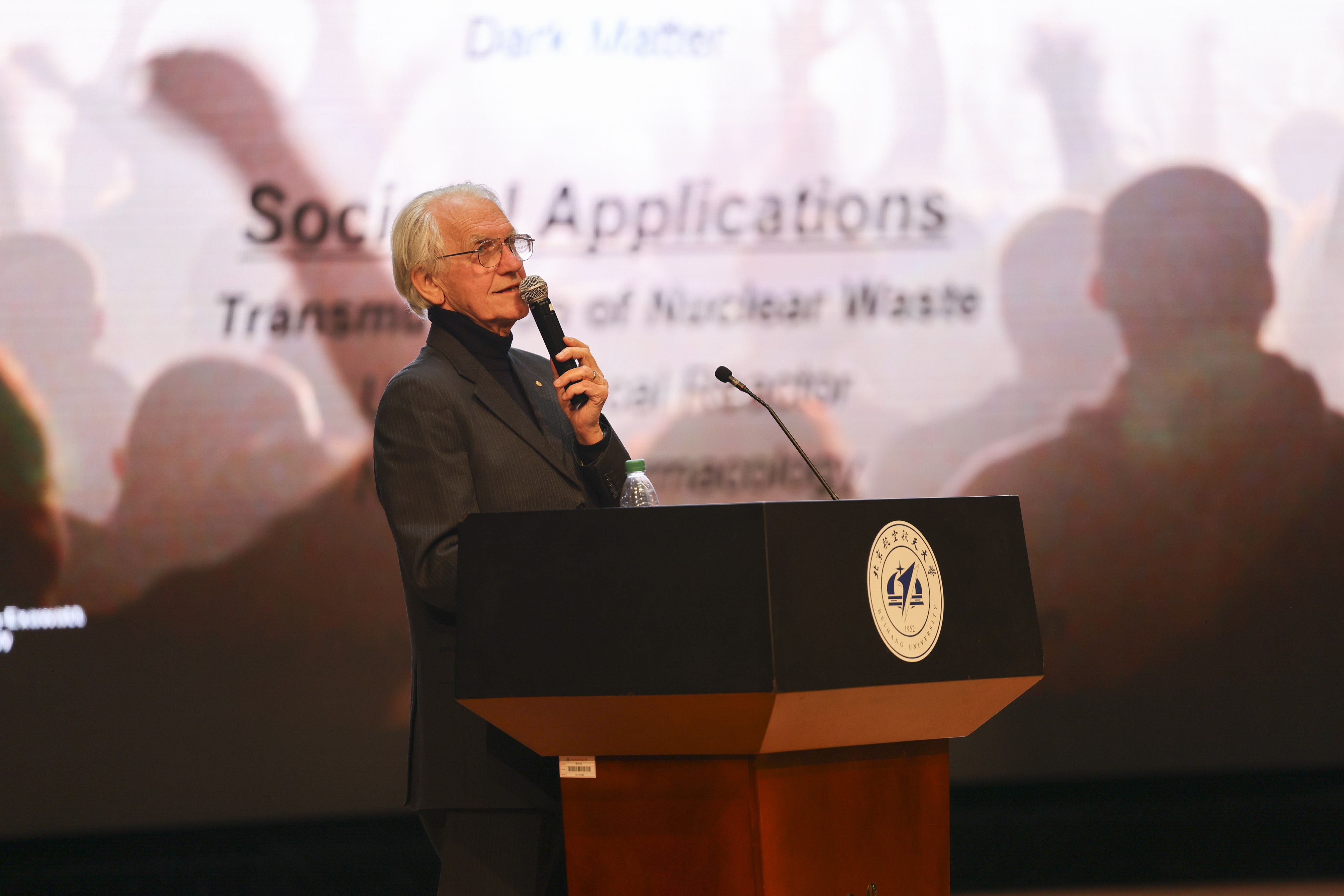 Mourou教授以《Extreme Light Grand Challenges:Scientific and Societal Applications(极端光学重大挑战:科学与社会方面的应用)》为主题,深入浅出地讲解了极端光学的基本概念及其在科学与工程领域的前沿应用。他首先介绍了极端光学的核心原理,随后结合飞秒加工、粒子加速、核子医学、核能利用与减排、太空碎片清除等领域,介绍了极端光学的诸多应用。他还分享了作为科学家获得诺贝尔奖的感受,并对和学生唐娜·斯特里克兰一起获得诺贝尔奖(后者是历史上第三位获得诺贝尔物理学奖的女性)表示自豪。