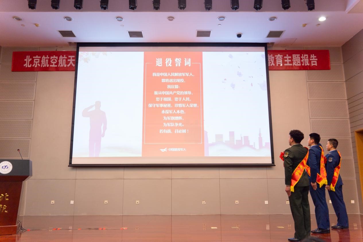 发言环节,退役大学生士兵代表王重龙分享了自己在部队破茧成蝶服役经历,以及归来退伍不褪色的决心。符合应征入伍条件的学生代表刘汶杰分享自己作为北航猎鹰突击队首届队员不断磨炼血性、坚定入伍决心的心路历程,表示将立志践行北航青年奉献国防的使命担当。我??占溆氲厍蚩蒲аг?021级本科生、全国模范退役军人常堃发言,号召青年学子赓续强军使命,以奋斗青春献礼强军强国伟业。