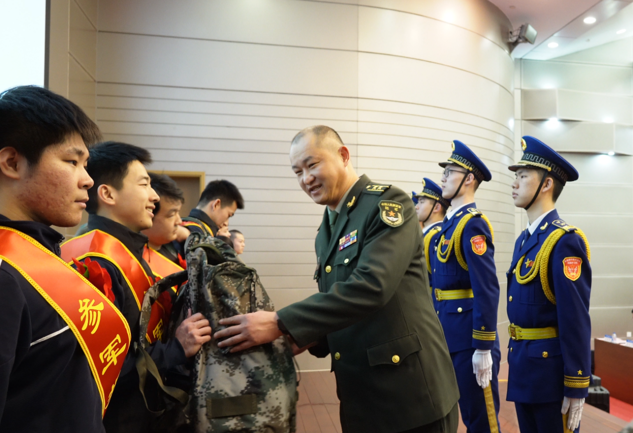 随后,海淀区人民武装部领导老师为符合应征入伍条件的大学生赠送训练背包。