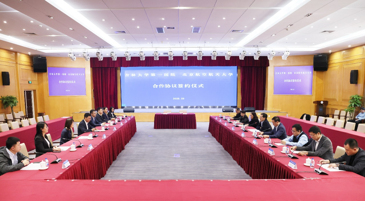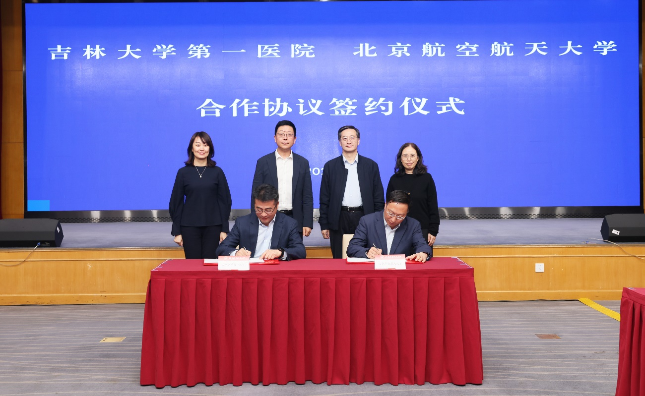 刘彬、吕金虎分别代表吉林大学第一医院、北京航空航天大学签署协议。