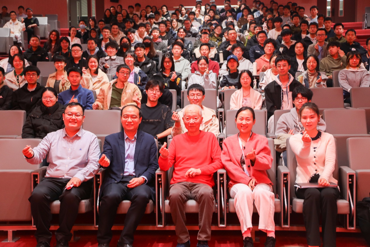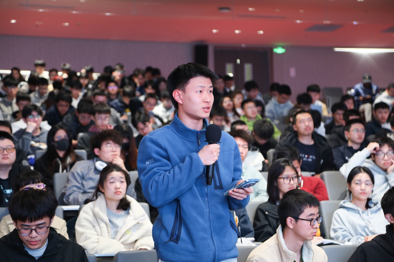 在互动环节,师生们踊跃提问,就AI时代的诸多热点问题与张翼成院士展开讨论和交流,现场气氛热烈。张翼成在回应中指出,AI的能力源于人类积累的原始知识材料。在AI时代,人类虽然可以借助技术实现部分“躺平”,但绝不能完全依赖AI。人类必须持续学习与创新,才能不断更新AI知识库,推动个性化发展,促进人类社会的全面进步。