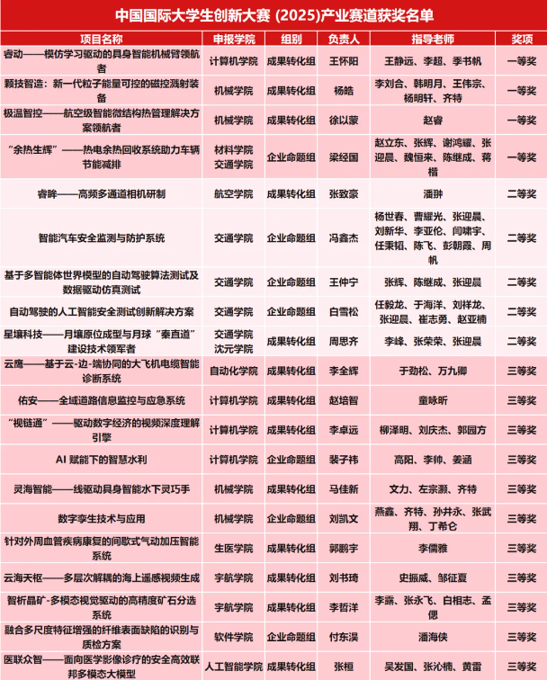 本届中国国际大学生创新大赛北航学子完整获奖名单如下: