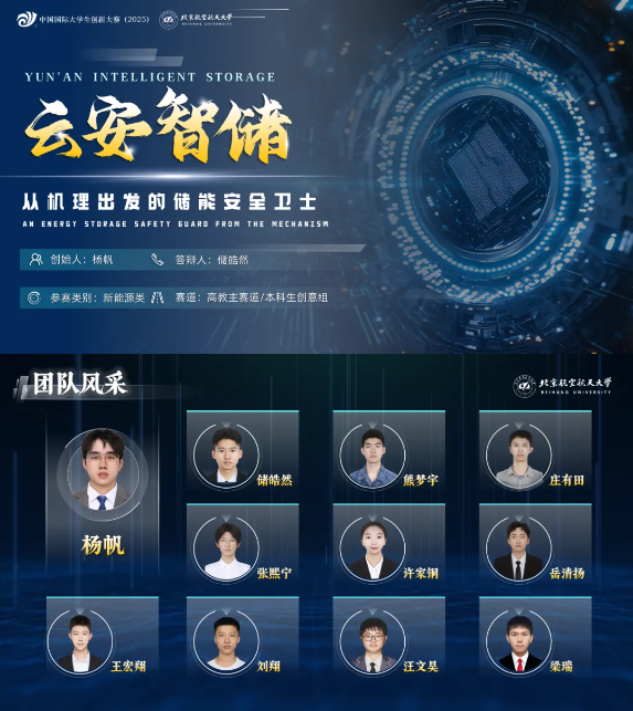 项目简介:云安智储以电化学阻抗谱(EIS)技术为核心,开发全域等效电路集成采集系统,检测精度达毫欧级,突破传统BMS早期风险识别瓶颈。融合“机理+AI”双模式,实现储能电池热失控提前15小时、常规风险提前24小时预警,综合准确率超 99%。产品包括云端储能电站卫士系统和车端系统,采用高等级芯片保障可靠性。依托北航产学研优势,拥有8项专利、4篇高影响因子论文,与宁德时代等共建平台,应用于20余家企业。以“机理+实践”驱动技术转化,构建三位一体竞争壁垒。