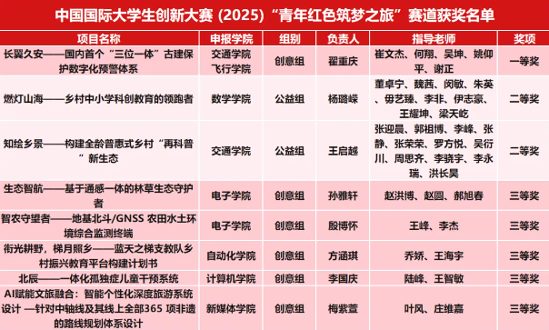 此外,我校斩获红旅赛道1项一等奖、2项二等奖、5项三等奖,产业赛道4项一等奖、5项二等奖、11项三等奖,北航还获评北京赛区优秀组织校。