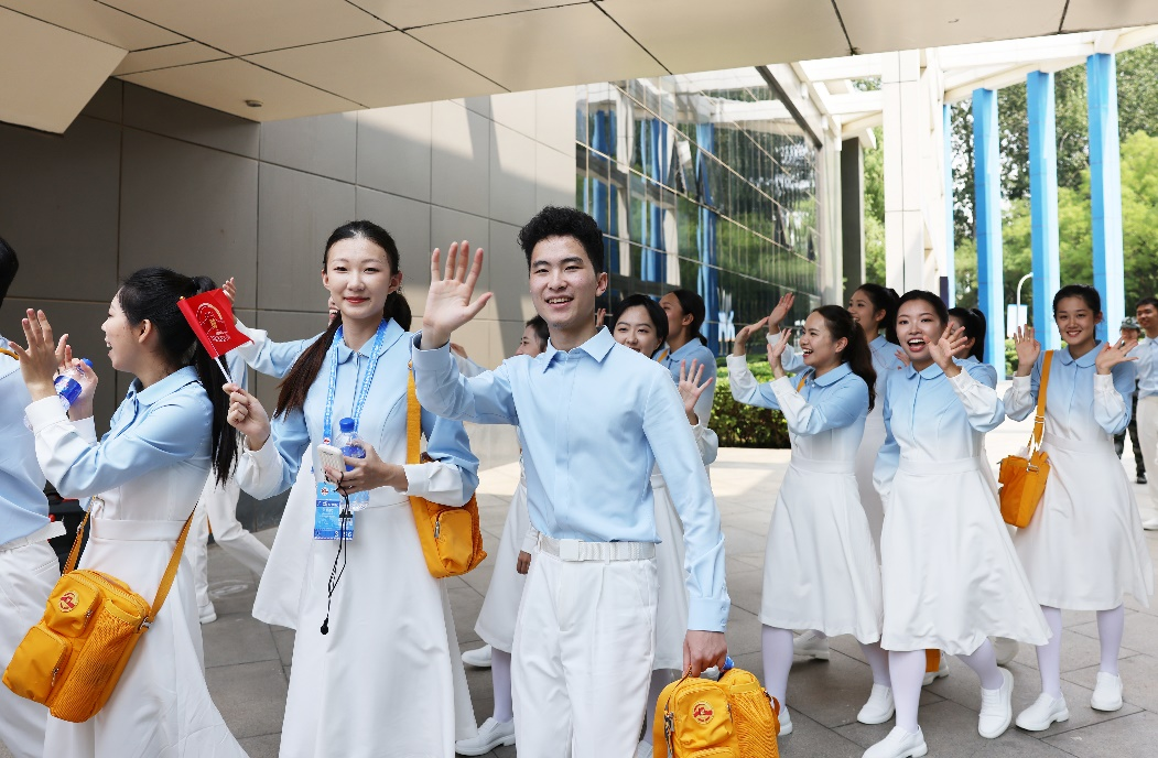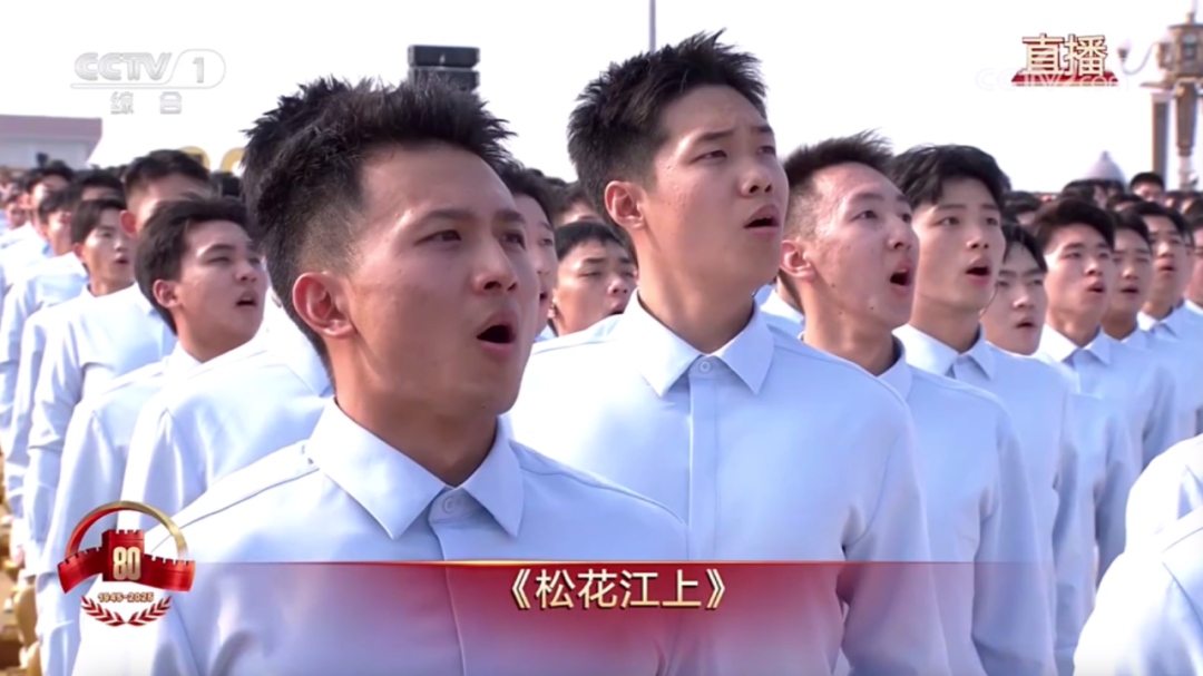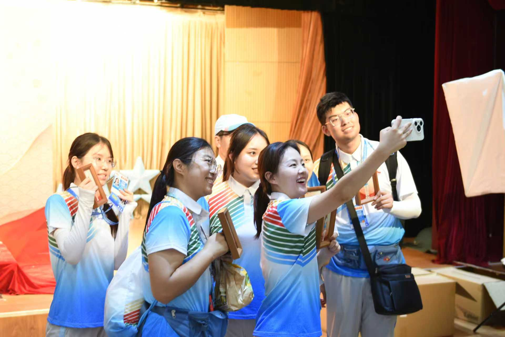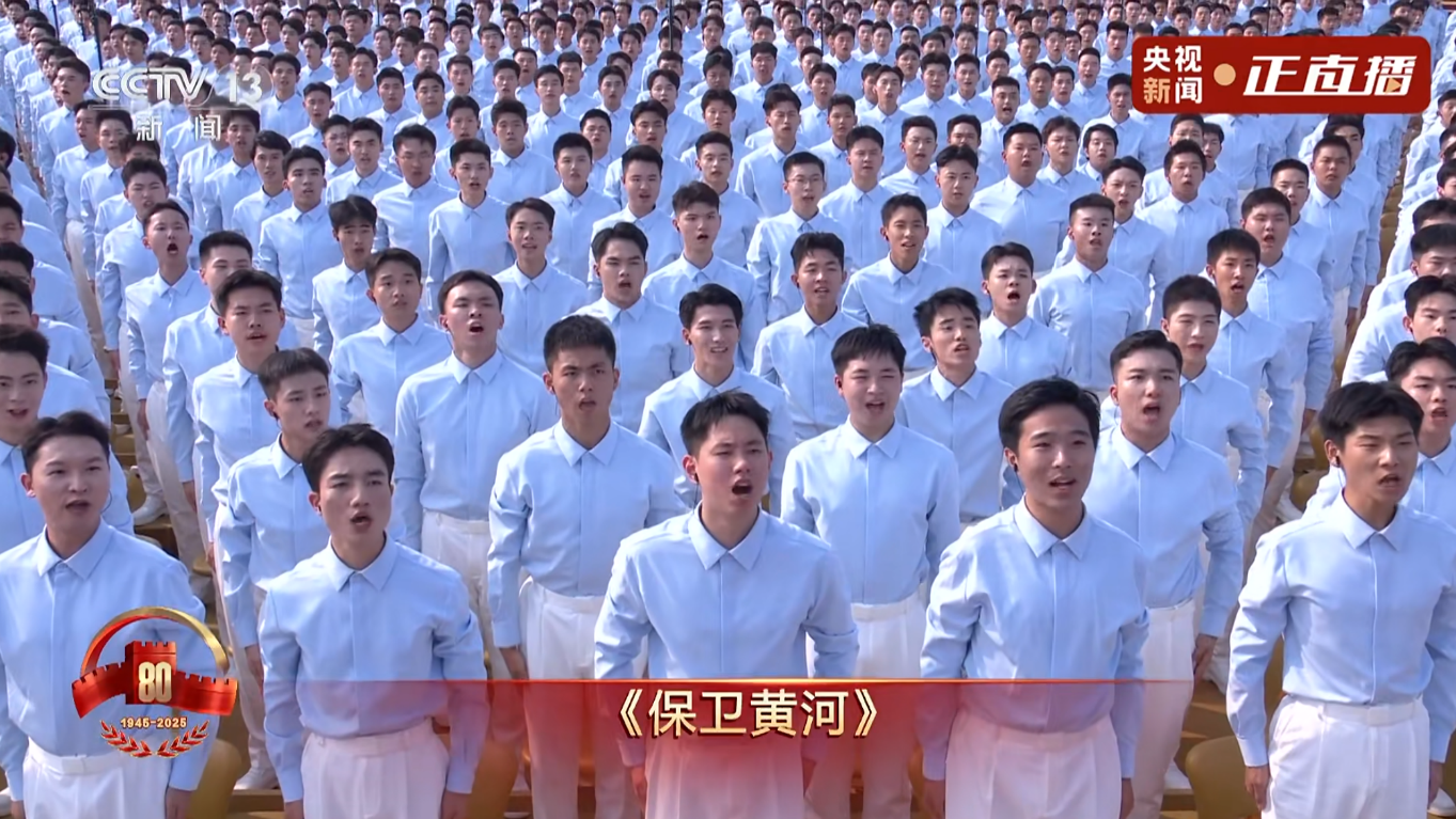 现场特别将师生定妆照拼成“80”和爱心图案,既纪念抗战胜利80周年,也象征全体师生团结一心、奉献付出的精神。这些影像记录下了师生们服务国家盛事的光荣时刻。